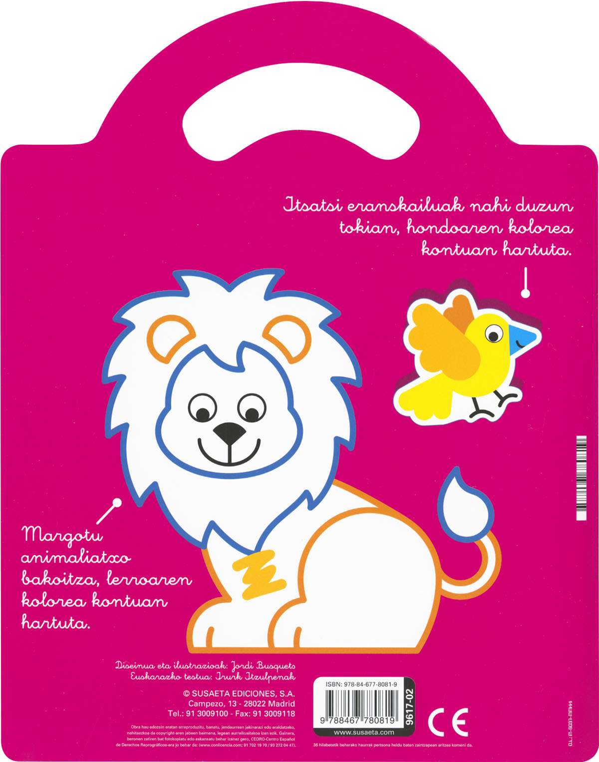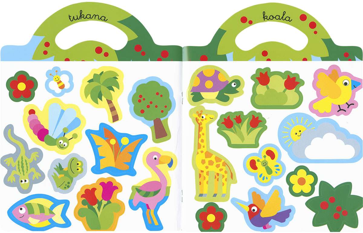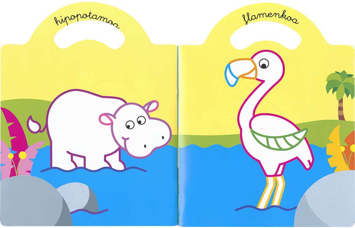 Liburu dibertigarri honetan, haurrek beren oihaneko animalia gogokoenak margotu ahalko dituzte, lerroaren kolore berberaz, eta eranskailuak dagokien tokian itsatsi.