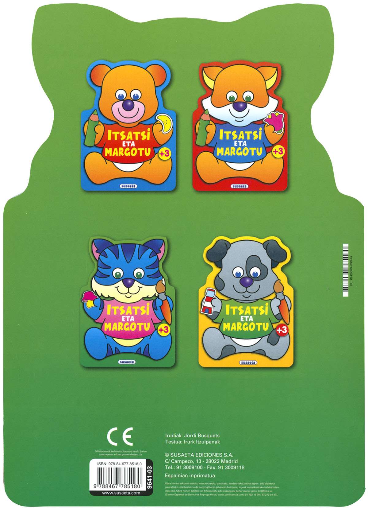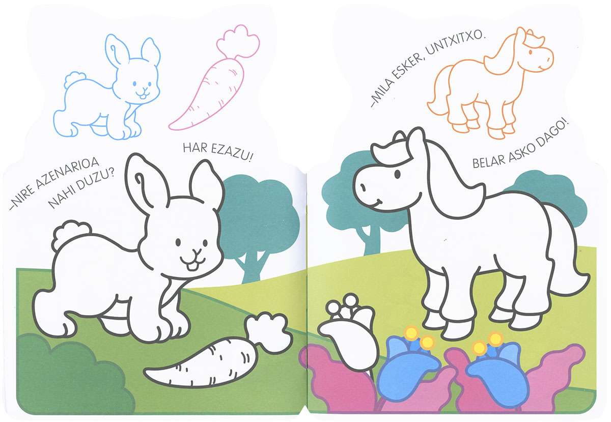 Probatu zure artista gaitasunak eta margotu liburu honetako animaliak; nahi dituzun koloreak erabil ditzakezu, edo barrualdean topatuko dituzun eranskailuen ereduari jarraitu.