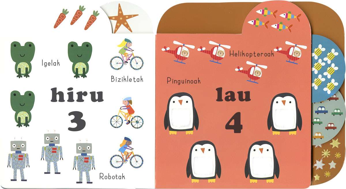 Ukitu testurak eta laztandu katua, marmorka... edo elurrezko panpina! Kartoizko liburu honek ertz biribilak ditu, orriak erraz pasatzeko eta zenbakiak modu dibertigarri eta interaktibo batean ezagutzeko.