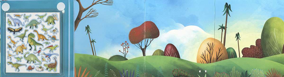 Con este gran libro desplegable podrás crear tus propios escenarios para jugar con tus dinosaurios preferidos. Ábrelo y escoge los imanes que más te gusten. Invéntate fantásticas y emocionantes aventuras en la época prehistórica con las criaturas más fascinantes que puedas imaginar.