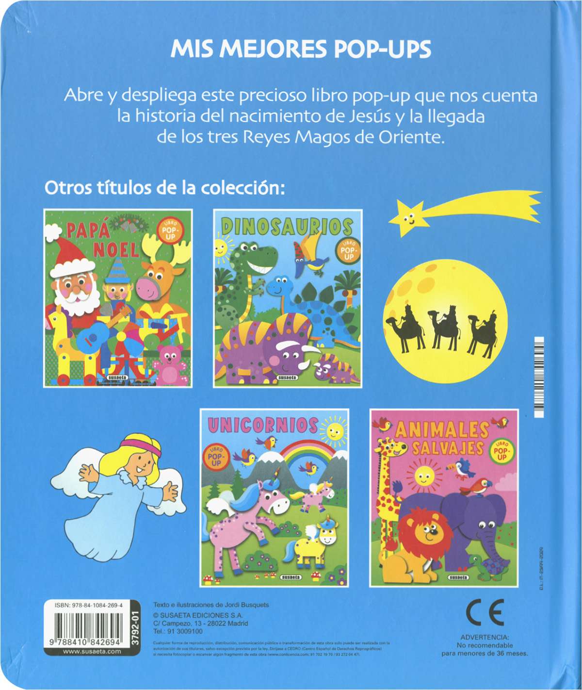 Abre y despliega este precioso libro pop-up que nos cuenta la historia del nacimiento de Jesús y la llegada de los tres Reyes Magos de Oriente.