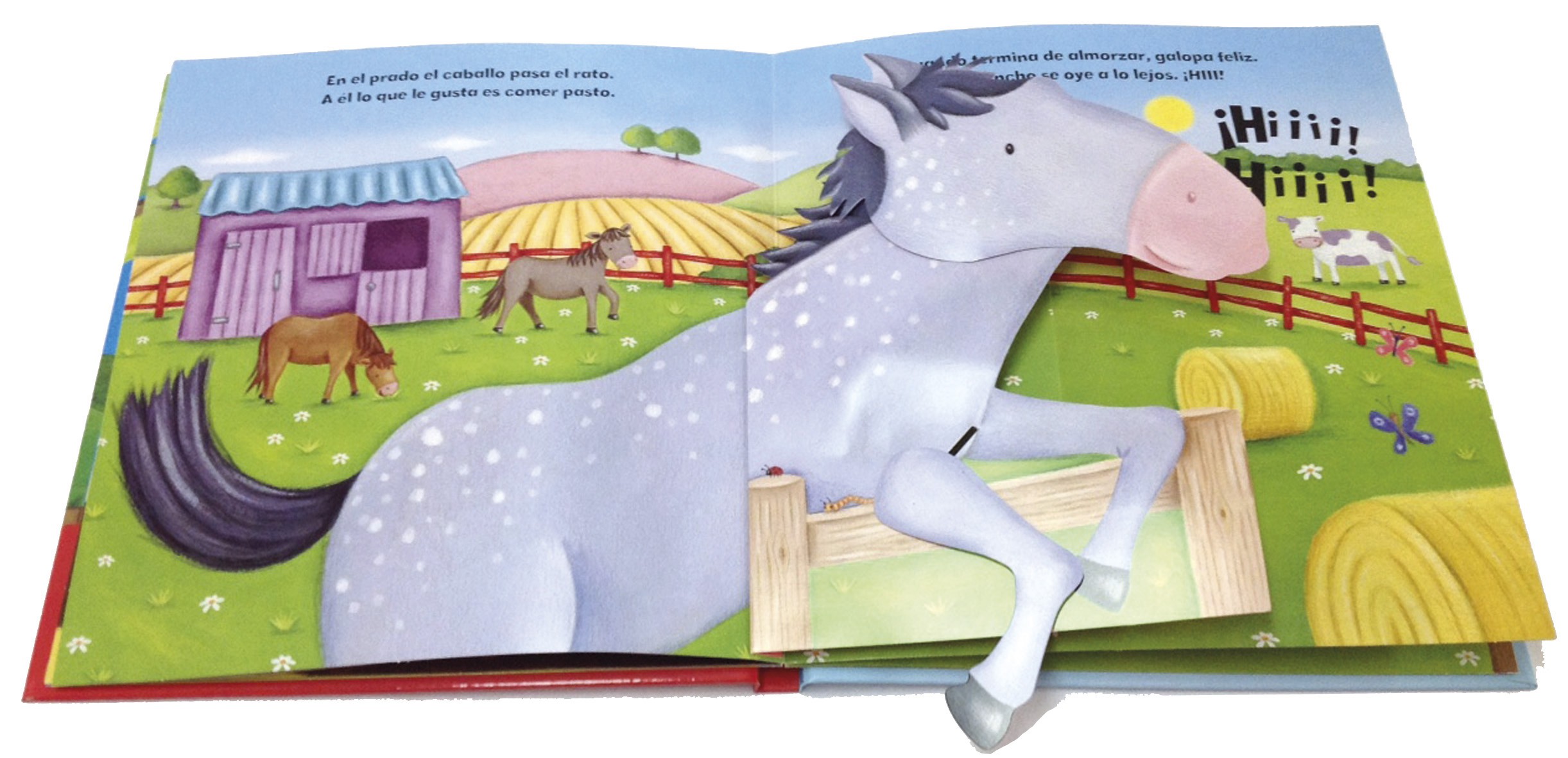 Visita la granja y conoce a los animales que viven en ella. ¡Todos sus habitantes asoman la cabeza en este libro pop-up!
