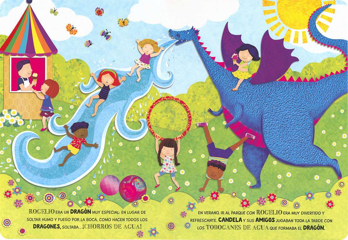Candela tenía un dragón como mascota, lo había encontrado escondido en el parque y le había puesto de nombre Rogelio. Un día, decidió llevárselo a casa: ¿le dejarían sus padres quedárselo?, ¿cómo podría vivir un dragón en familia? Una simpática y tierna historia para toda la familia.