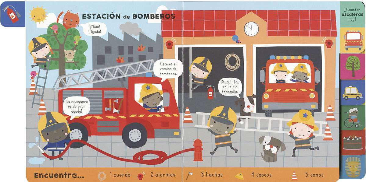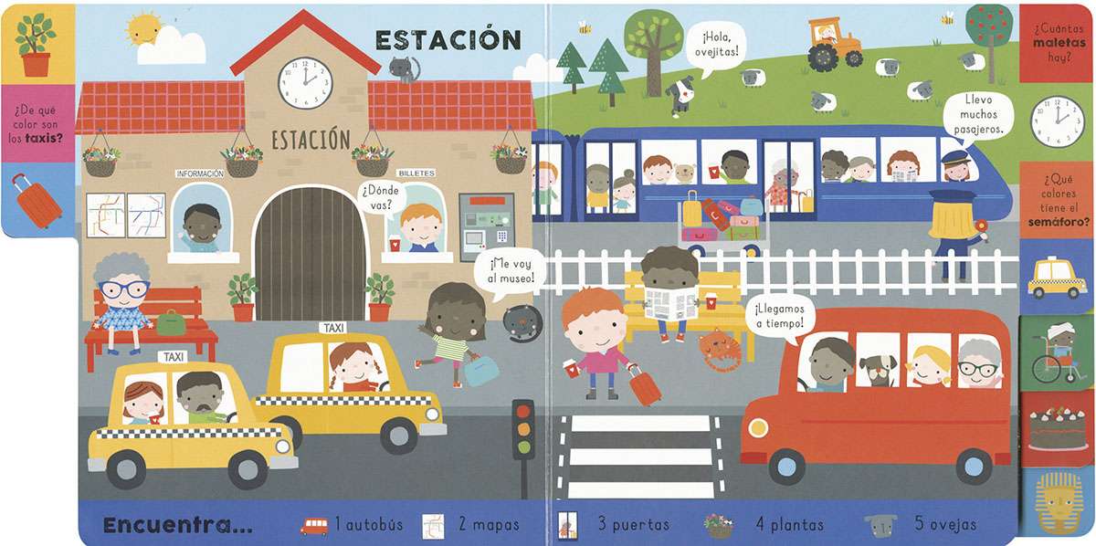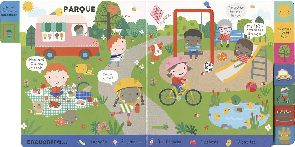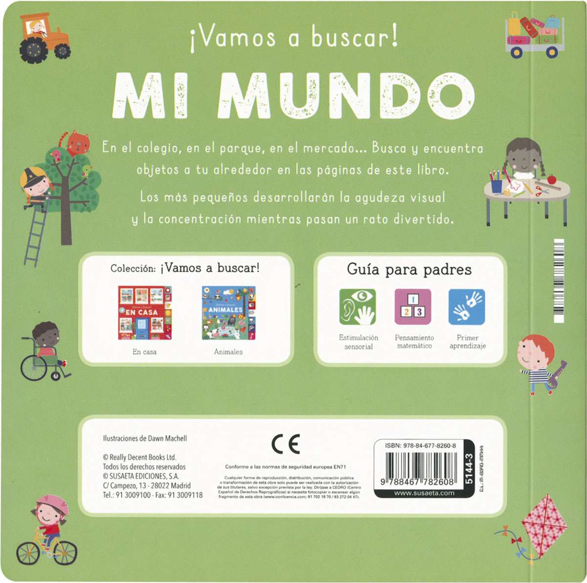 En el colegio, en el parque, en el mercado... Busca y encuentra objetos a tu alrededor en las páginas de este libro de cartón que ayudará a los niños a desarrollar la destreza visual y la concentración, mientras pasan un rato divertido.