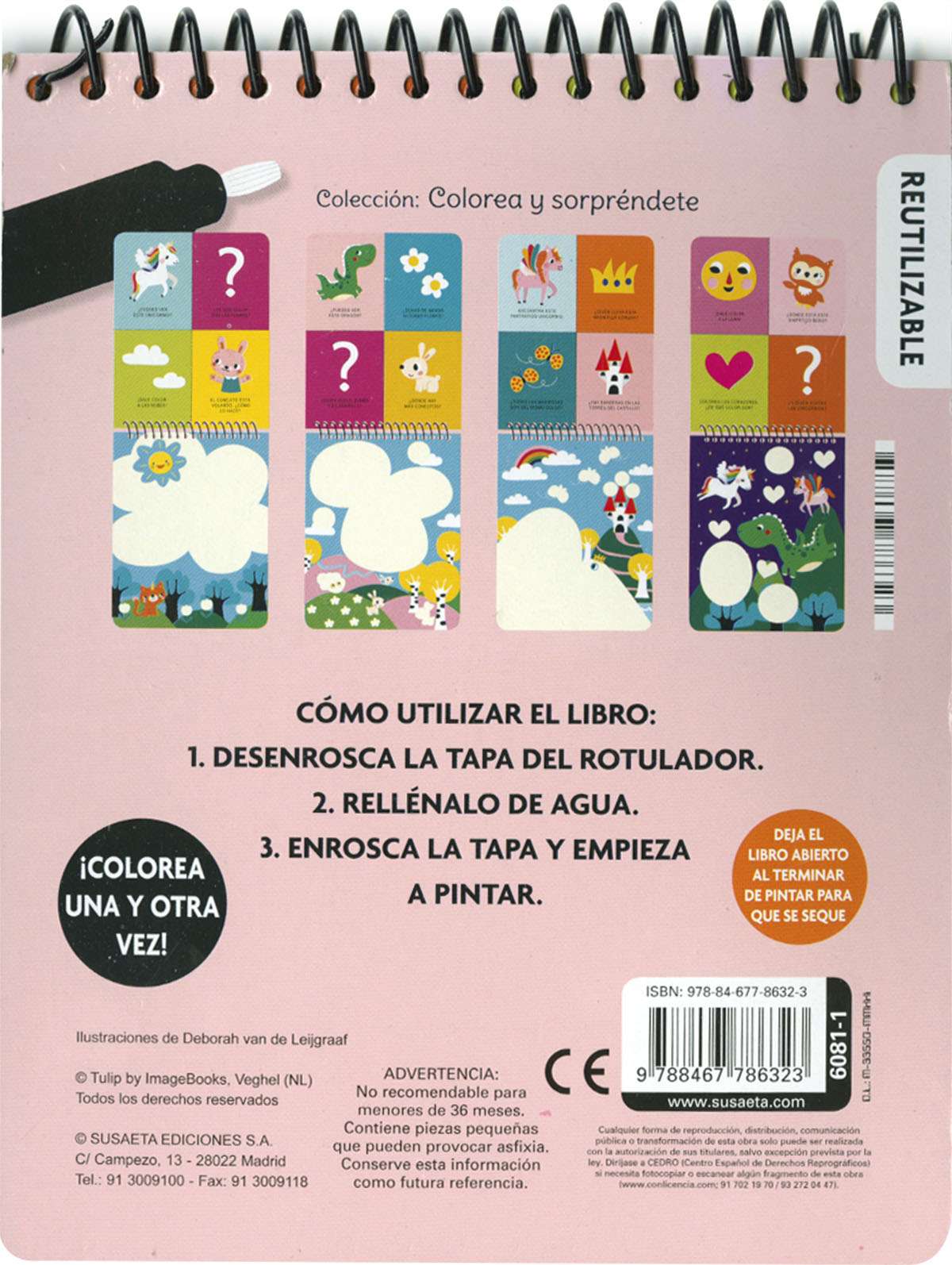 Únicamente necesitas agua para hacer magia... ¡Compruébalo con tus propios ojos! Pinta las páginas de este libro de cartón y verás cómo aparacen los colores solos. Podrás hacerlo todas las veces que quieras, pues, al secarse, los colores vuelven a desaparecer. ¡Es magia!