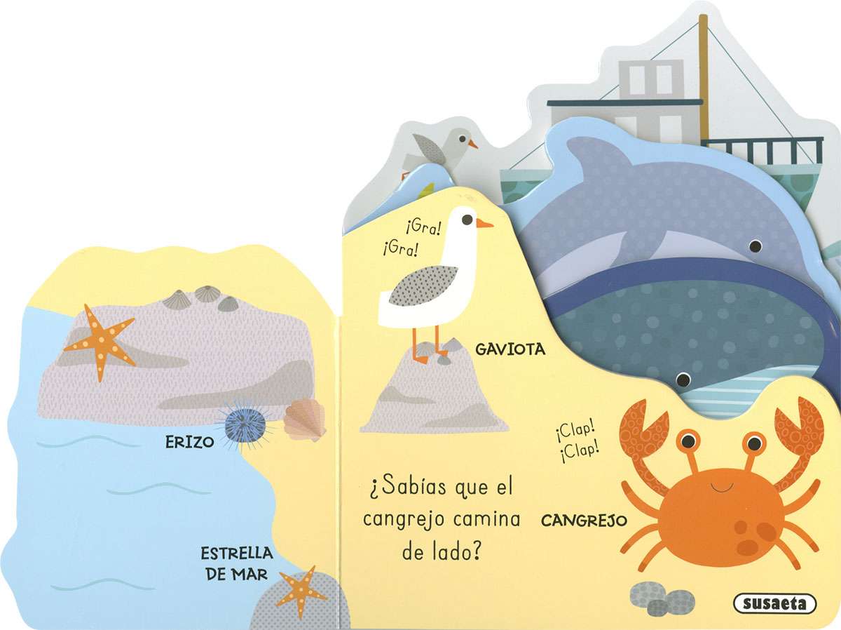 Descubre este precioso librito de cartón con el que conocer a los animales del mar. Con sus páginas troqueladas de suaves curvas y sus atractivas ilustraciones, es el libro ideal para los más pequeños de la casa.