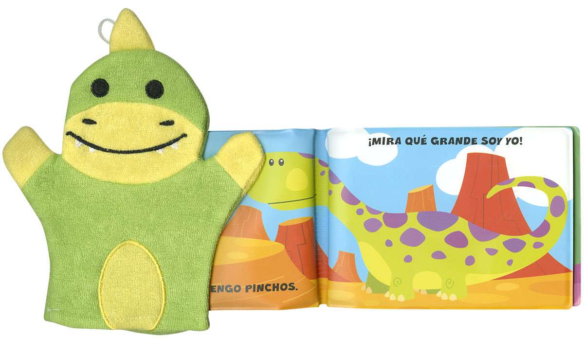 ¡Qué divertida es la hora del baño con este simpático libro de dinosaurios! Conoce a algunos de ellos y pásatelo en grande mientras juegas en el agua. Además, incluye una manopla con la forma de un dinosaurio.
