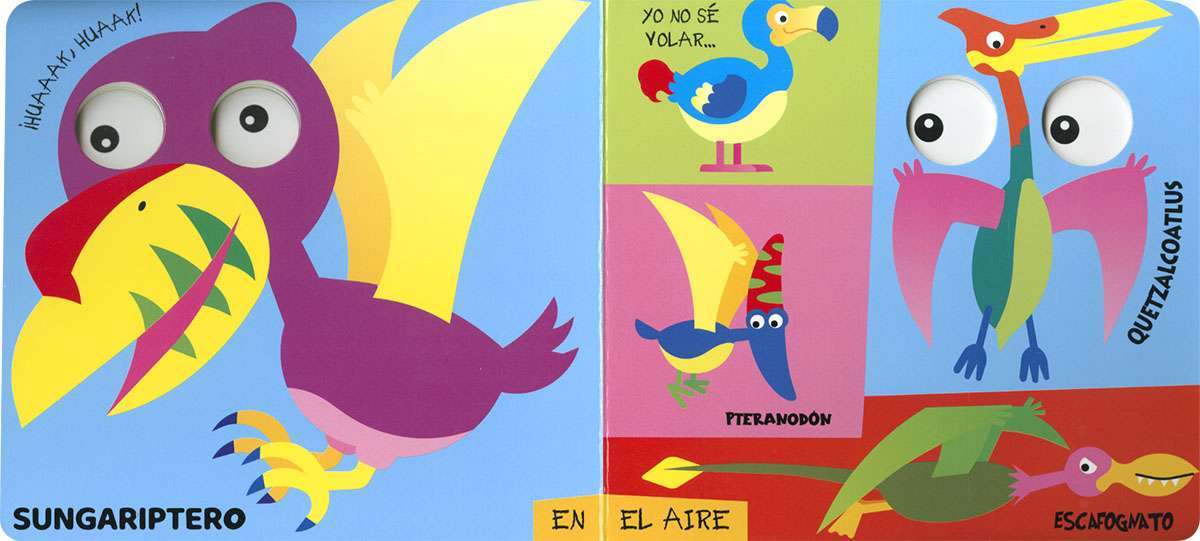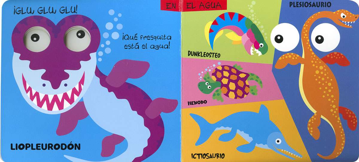 Un simpático libro de hojas de cartón con ojos móviles para que conozcas a tus amigos los dinosaurios y te diviertas.