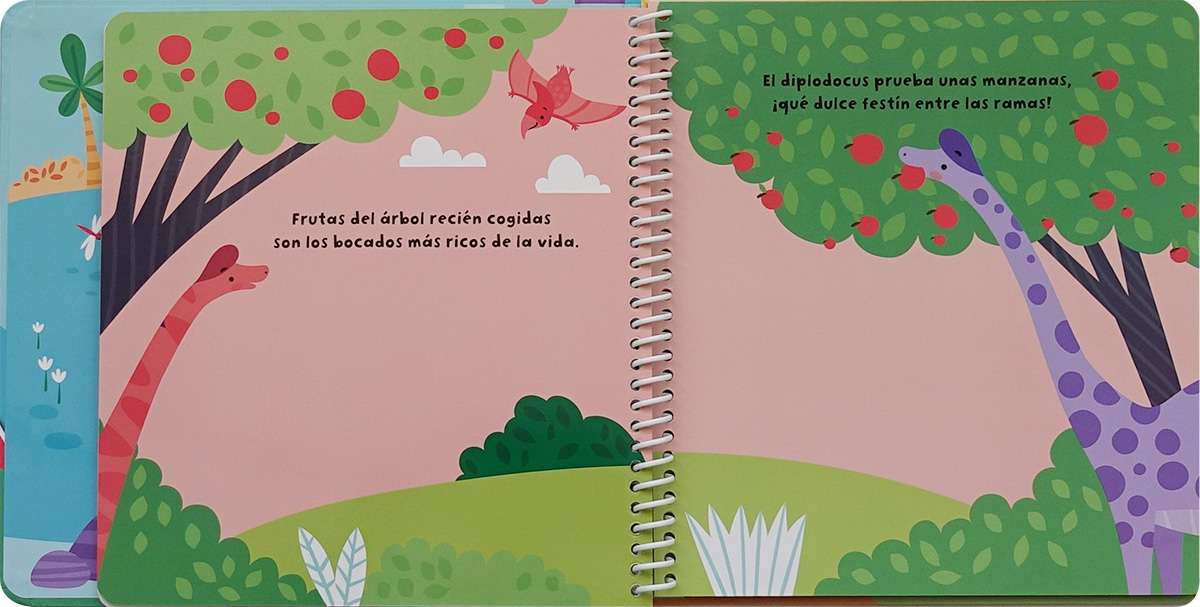 Encuadernación: Tapa dura acabada en mate, con brillos. Espiral oculta. Hojas de cartulina plastificadas y pegatinas