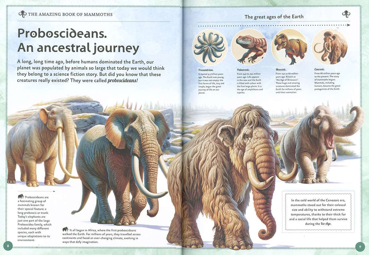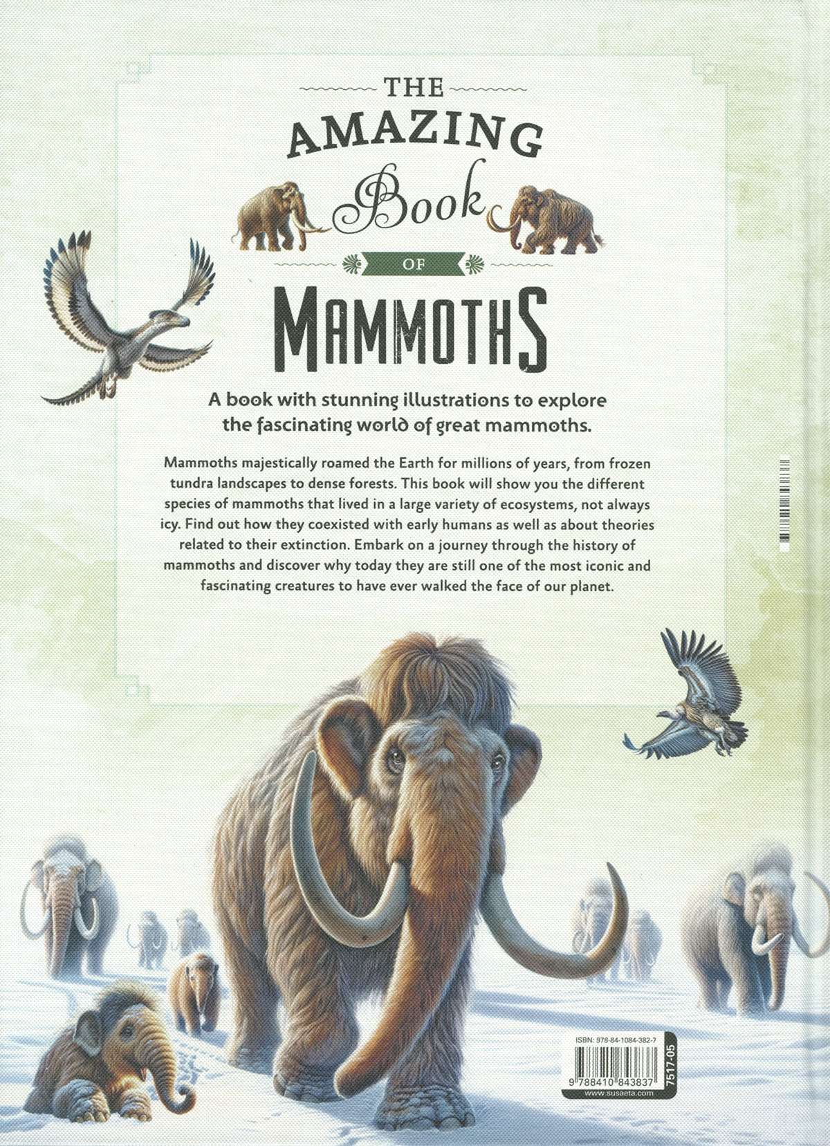 A book with stunning illustrations to explore the fascinating world of great mammoths. Mammoths majestically roamed the Earth for millions of years, from frozen tundra landscapes to dense forests. This book will show you the different species of mammoths that lived in a large variety of ecosystems, not always icy. Find out how they coexisted with early humans as well as about theories related to their extinction. Embark on a journey through the history of mammoths and discover why today they are still one of the most iconic and fascinating creatures to have ever walked the face of our planet.