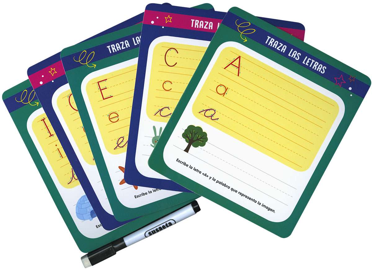 ¡Las letras son divertidas! Este set contiene 80 juegos y actividades para aprender el abecedario de la A a la Z y escribir las primeras palabras. Con 40 tarjetas, incluye además un rotulador borrable para que puedas escribir una y otra vez. ¡Ideal para los pequeños estudiantes de la casa!