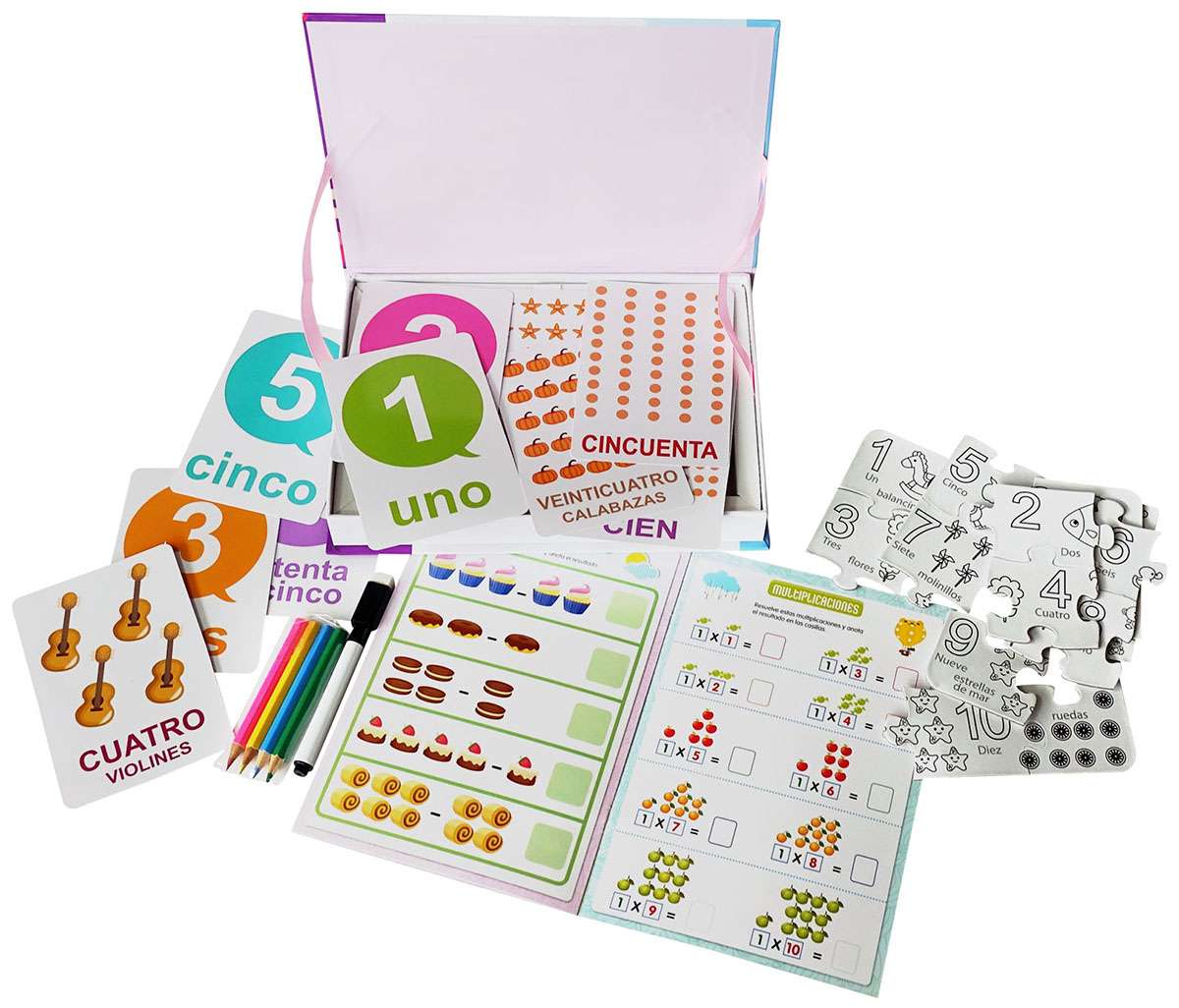 Aprende matemáticas practicando las operaciones de cálculo con este libro de sencillas actividades que incluye flashcards, un puzle, un rotulador borrable y cuatro lápices de colores. Piensa, resuelve ¡y aprende!