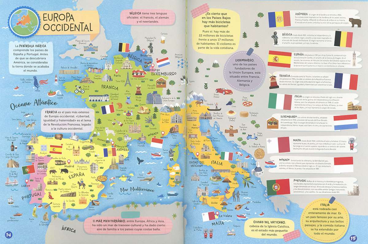 La bandera de un país es símbolo de su identidad. Representa sus valores, su historia y su cultura. El diseño y los colores que muestra tienen un significado especial y pueden transmitir información sobre el país: su geografía, su pasado histórico, sus habitantes... ¡Te sorprenderá todo lo que nos cuentan las banderas! Con este atlas podrás viajar, descubrir las maravillas naturales y culturales y conocer las banderas de todos los países del mundo.