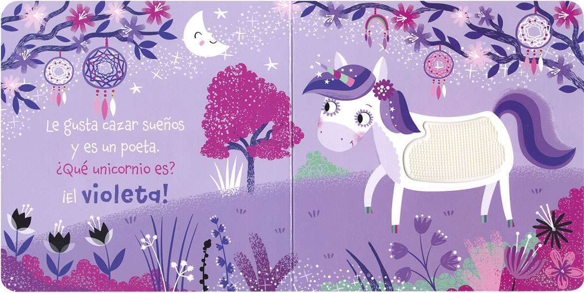 Descubre a los unicornios con este libro de cartón con texturas de silicona que los niños más pequeños no podrán dejar de tocar. Lee las rimas, toca el libro ¡y siéntelo!
