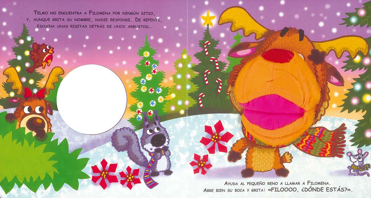 Al pequeño reno Telmo le encanta jugar al escondite en el bosque. Ayúdale a buscar a su mejor amiga, Filomena. ¿Dónde se habrá escondido? ¡Diviértete con él leyendo este libro-marioneta!