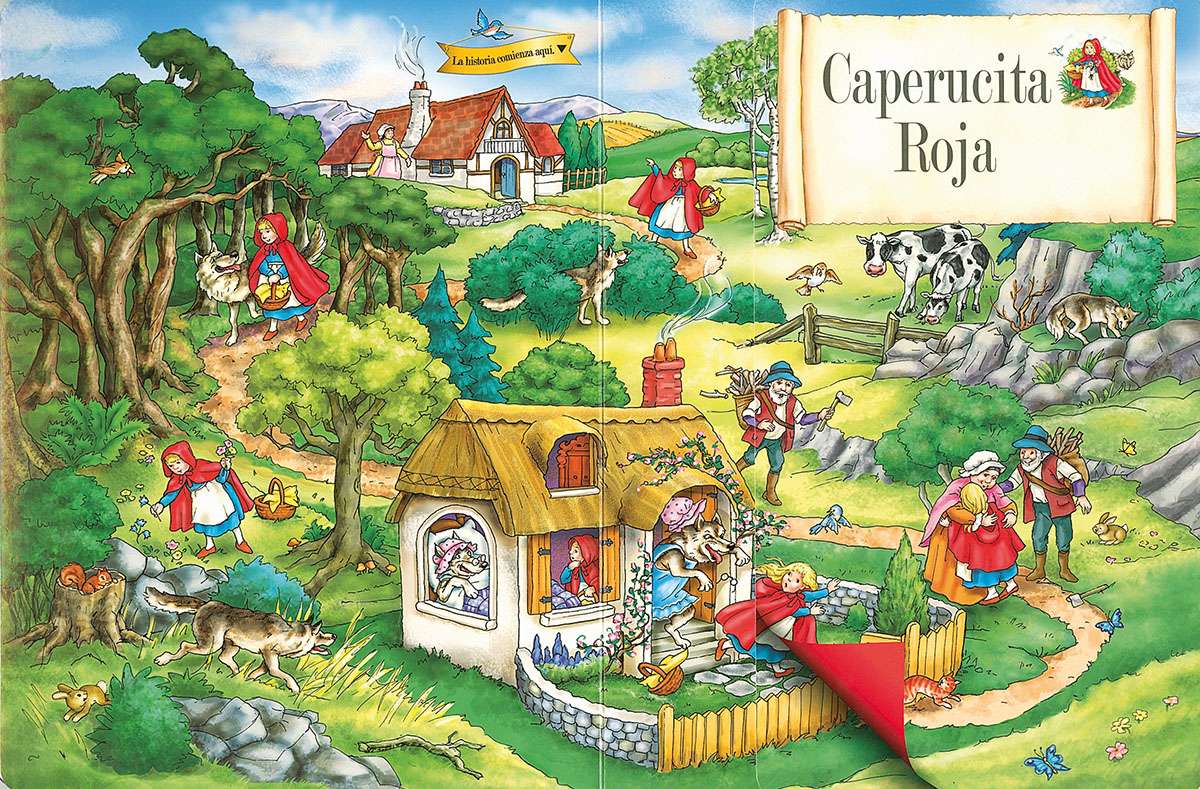 Despliega la solapa de cada página y lee el cuento que pordrás seguir visualmente a través de la detallada ilustración. ¡Cinco cuentos clásicos y una nueva y original manera de leerlos!