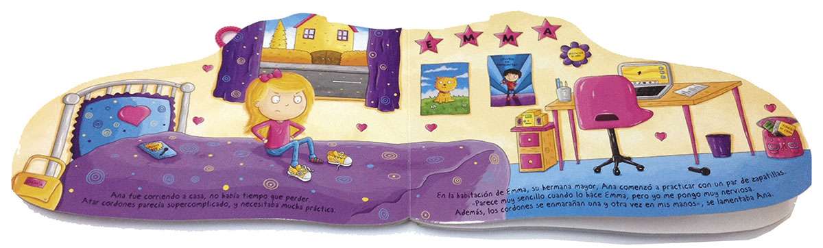 ¿Sabes atarte los cordones? Con este libro en forma de zapatilla puedes aprender. Observa cómo lo hace Ana y sigue las instrucciones, practica con el cordón y... ¡podrás hacerlo tú solo!