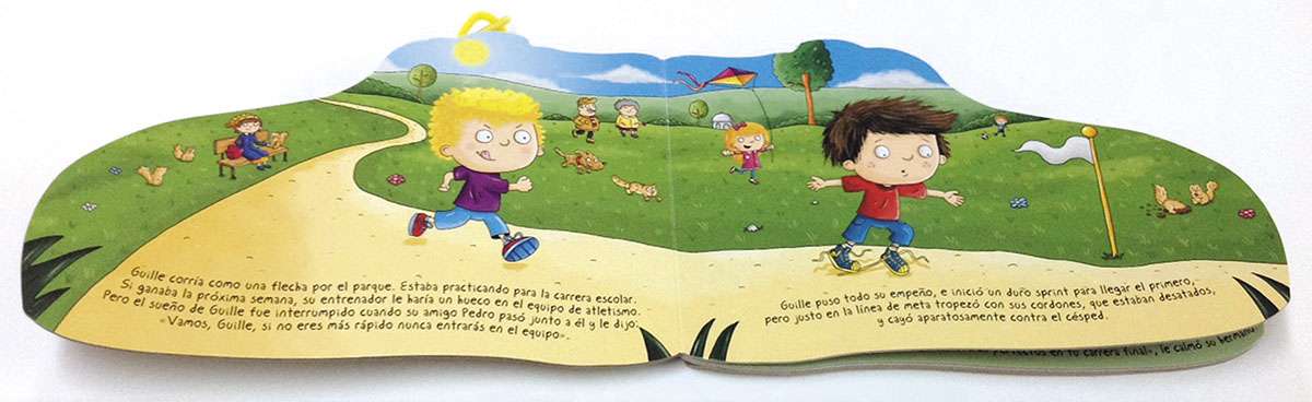 ¿Sabes atarte los cordones? Con este libro en forma de zapatilla puedes aprender. Observa cómo lo hace Guille y sigue las instrucciones, practica con el cordón y... ¡podrás hacerlo tú solo!