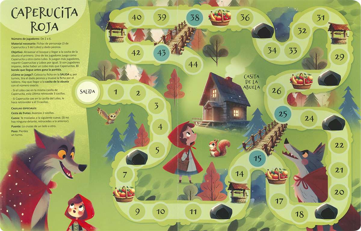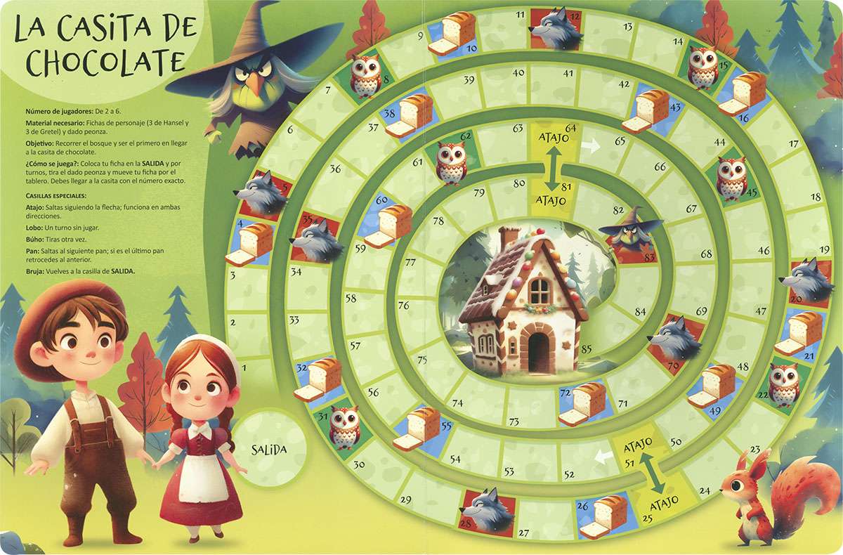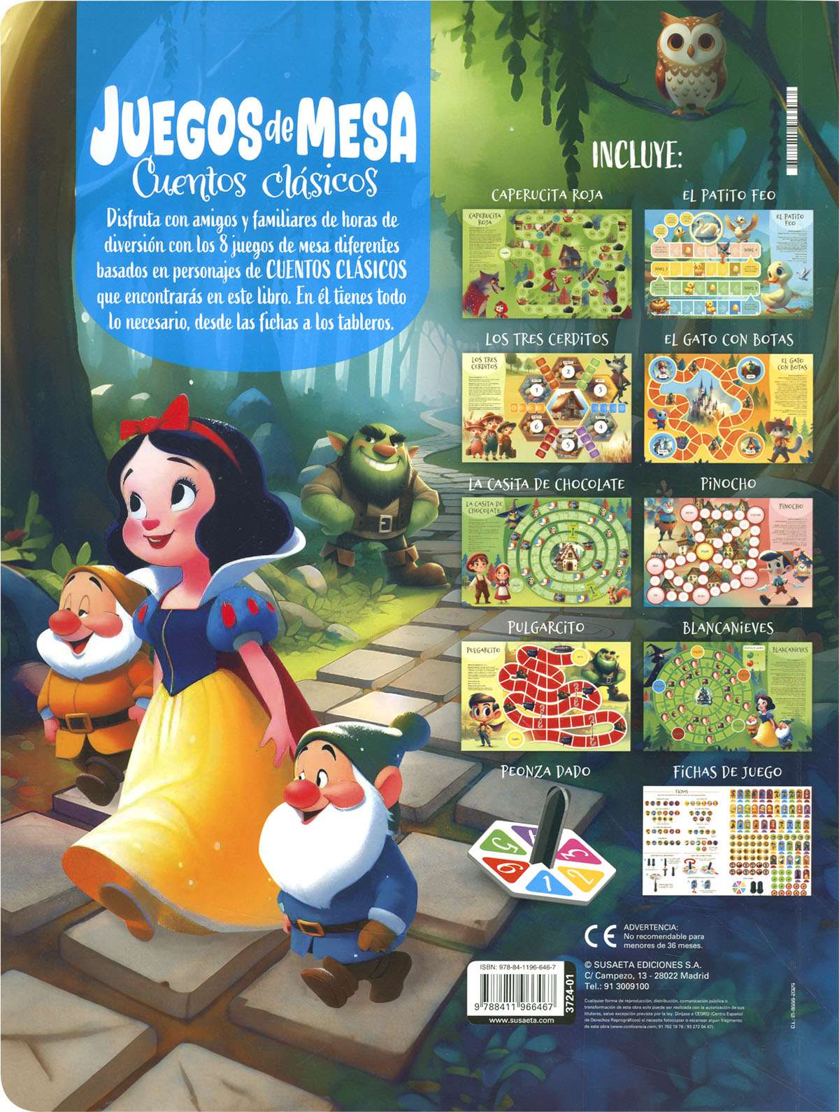 Disfruta con amigos y familiares de horas de diversión con los 8 juegos de mesa diferentes basados en personajes de CUENTOS CLÁSICOS que encontrarás en este gran libro. En él tienes todo lo necesario para jugar, desde las fichas a los tableros. ¡Que te diviertas!
