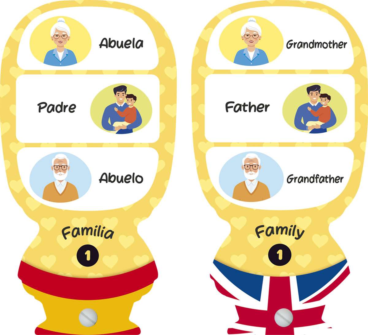 ¡Diviértete y aprende! En cada ficha aparecen dibujos sencillos junto a la palabra que los define en español a su lado.En el reverso de cada ficha aparecen los mismos dibujos y la traducción de la palabra en inglés. El juego consiste en mostrar a los niños las imágenes y preguntarles su nombre en inglés. Es una manera efectiva de ir aprendiendo palabras y añadiendo vocabulario a sus conocimientos.