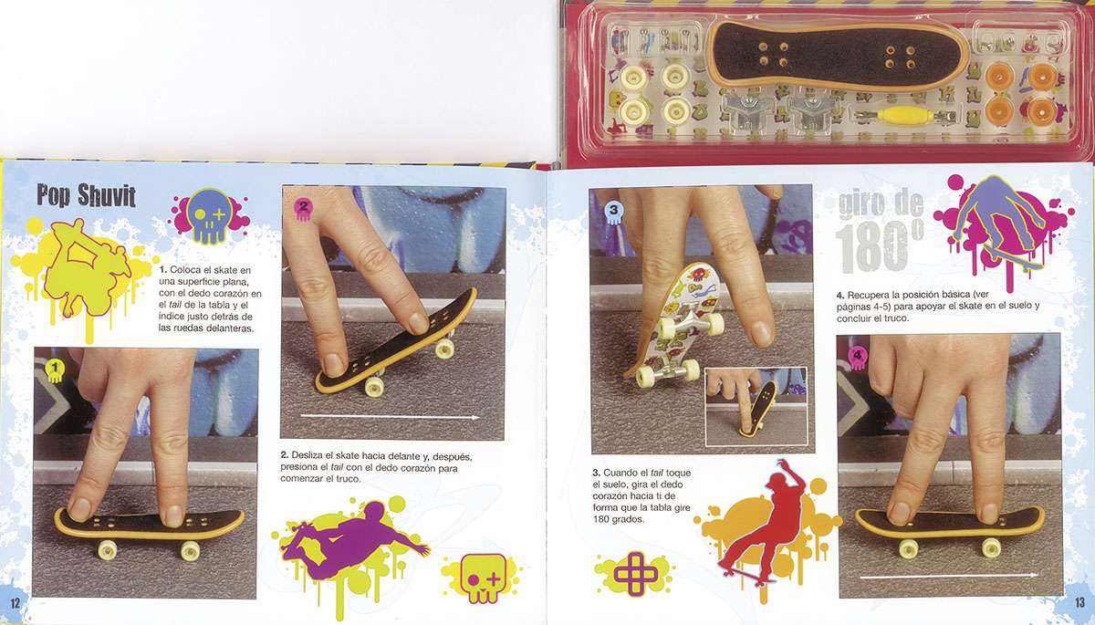 Encuadernación: Cartoné con cubierta plastif.+ componentes:tabla de skateboard,ruedas repuesto,herramientas y pegat.