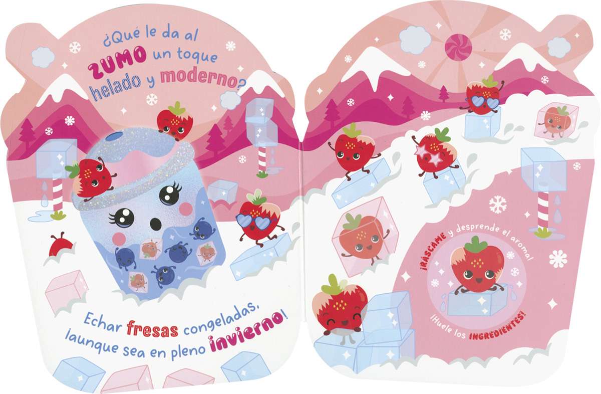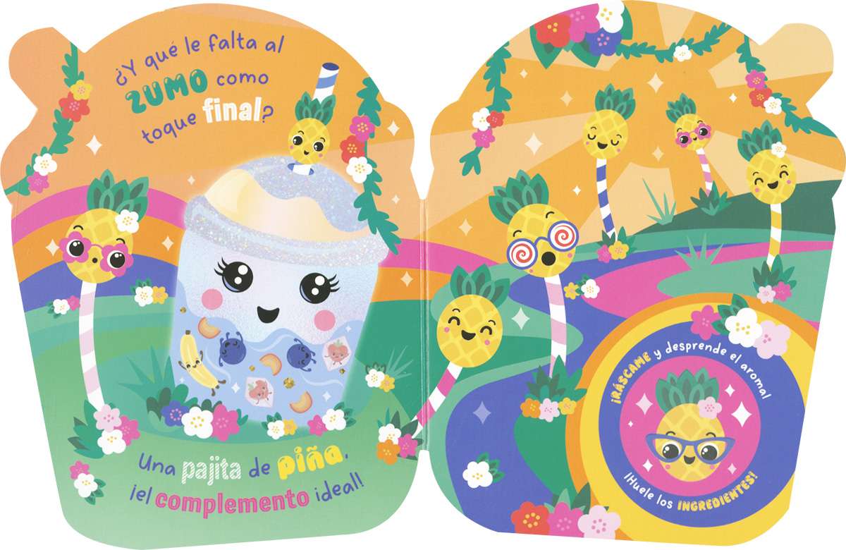 Este libro tan cuqui esconde dulces aromas en su interior... ¡Rasca los ingredientes y prepara un delicioso zumo de frutas! ¡A qué huele cada uno? Un libro de cartón troquelado con olores.