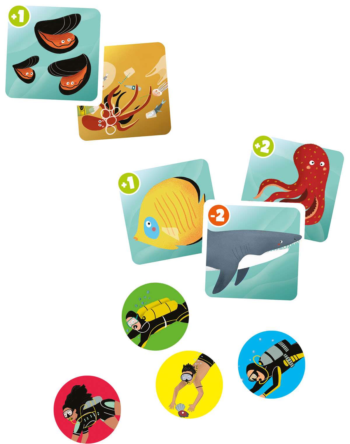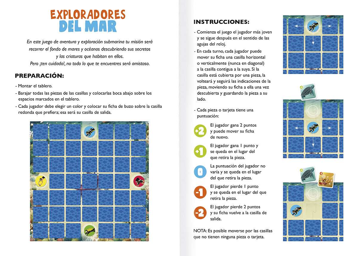 En este juego de aventura y exploración submarina, tu misión y la de tus compañeros de viaje será recorrer el fondo de mares y océanos descubriendo sus secretos y las criaturas que habitan en ellos. Tienes un tablero en forma de puzle, 45 tarjetas o piezas, 4 fichas y un libro de instrucciones para no perderos. Pero ¡mucho cuidado!, puede que no todo lo que os encontréis sea amistoso.