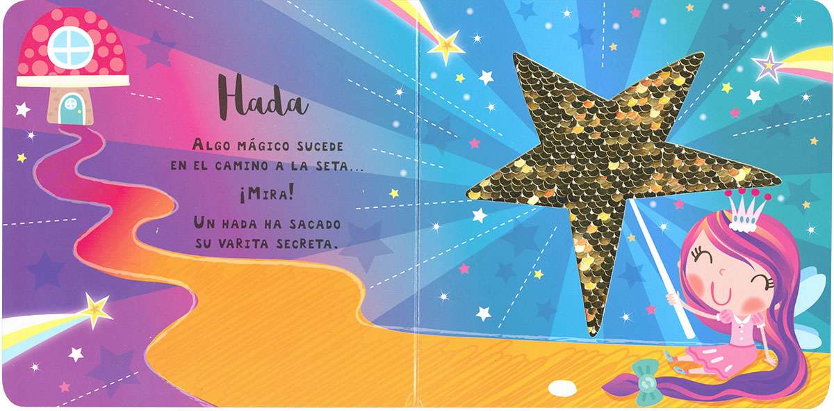 Descubre un mundo lleno de fantasía, brillo y color con este original libro de lentejuelas que podrás acariciar. ¡Al moverlas cambian de color! Hadas, sirenas, unicornios Todos te están esperando.