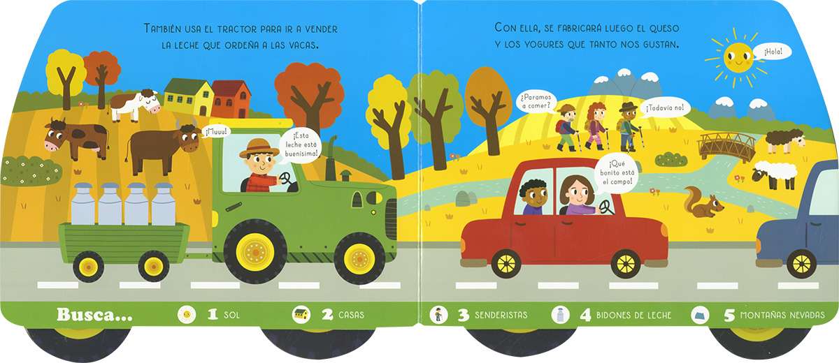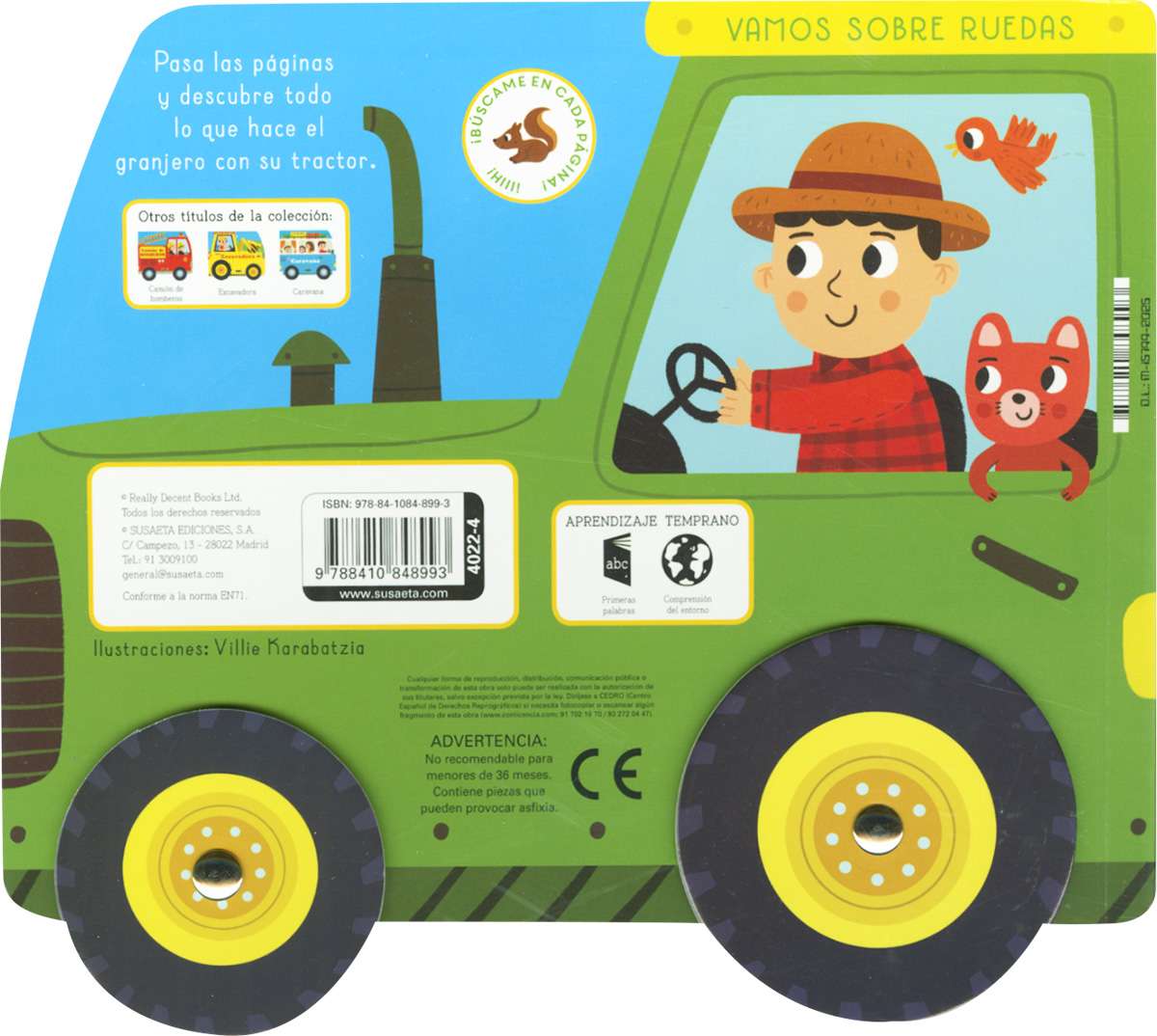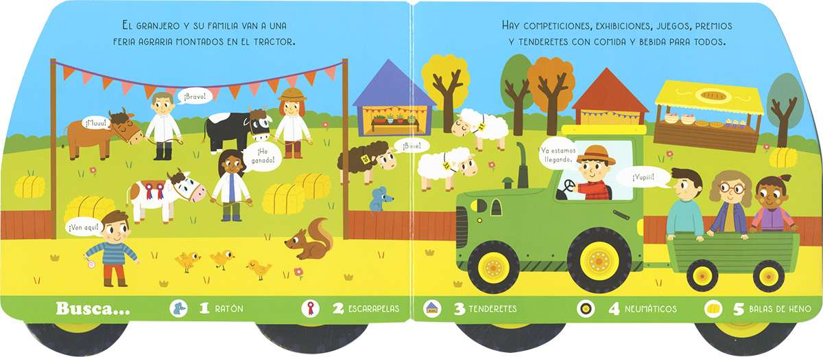 ¡Súbete a nuestro tractor y vamos a trabajar! Hay muchas cosas que hacer en el campo. ¿Quieres sabes adónde iremos? ¡Pues no te lo pierdas! Un libro de cartón con ruedas: ¡para leer y jugar!