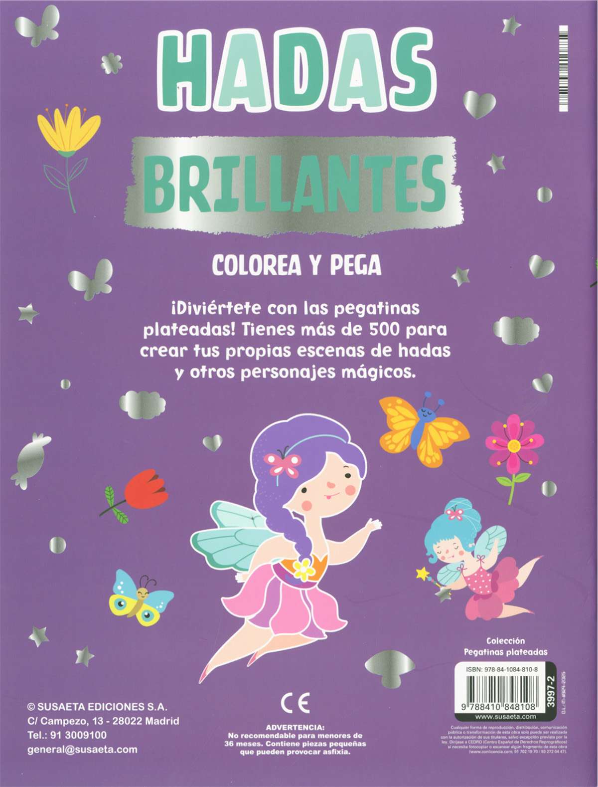 Encuadernación: Cartulina en grapa con acabado en mate y estampación de plata. Con pegatinas.