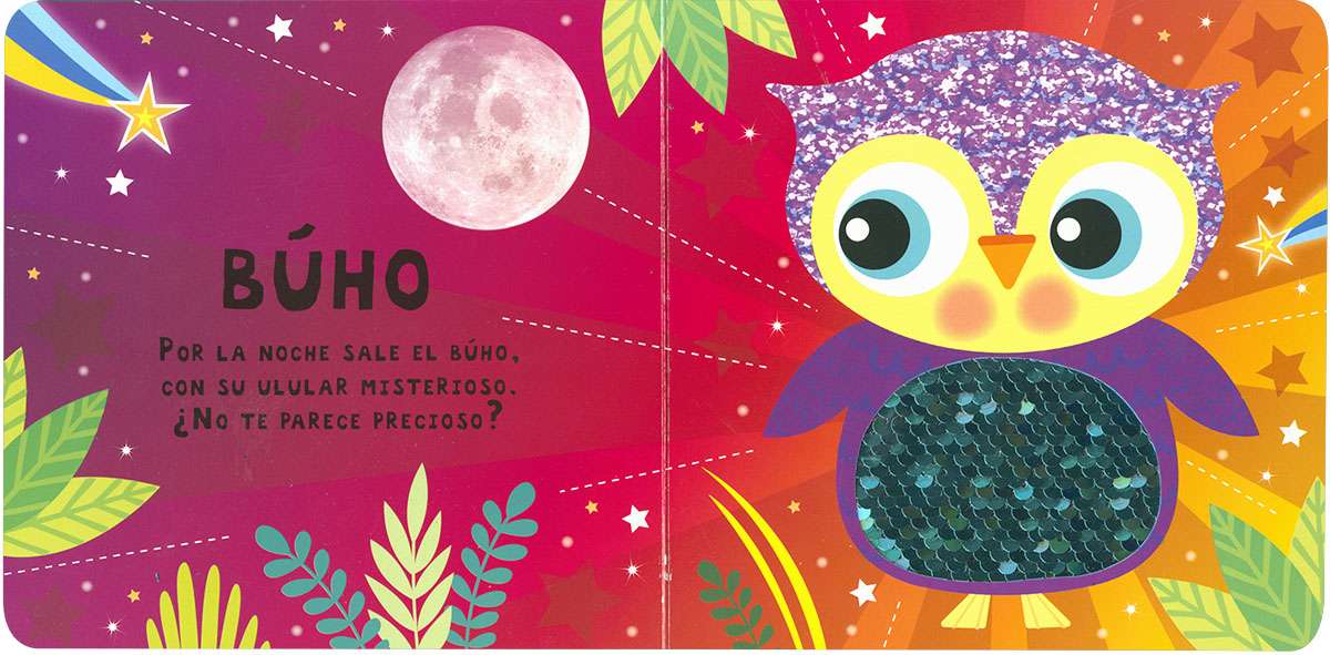 Conoce un montón de animales y acaricia su suave cuerpo de lentejuelas. ¡Al moverlas cambian de color! La ardilla, el león, la medusa Todos te están esperando.