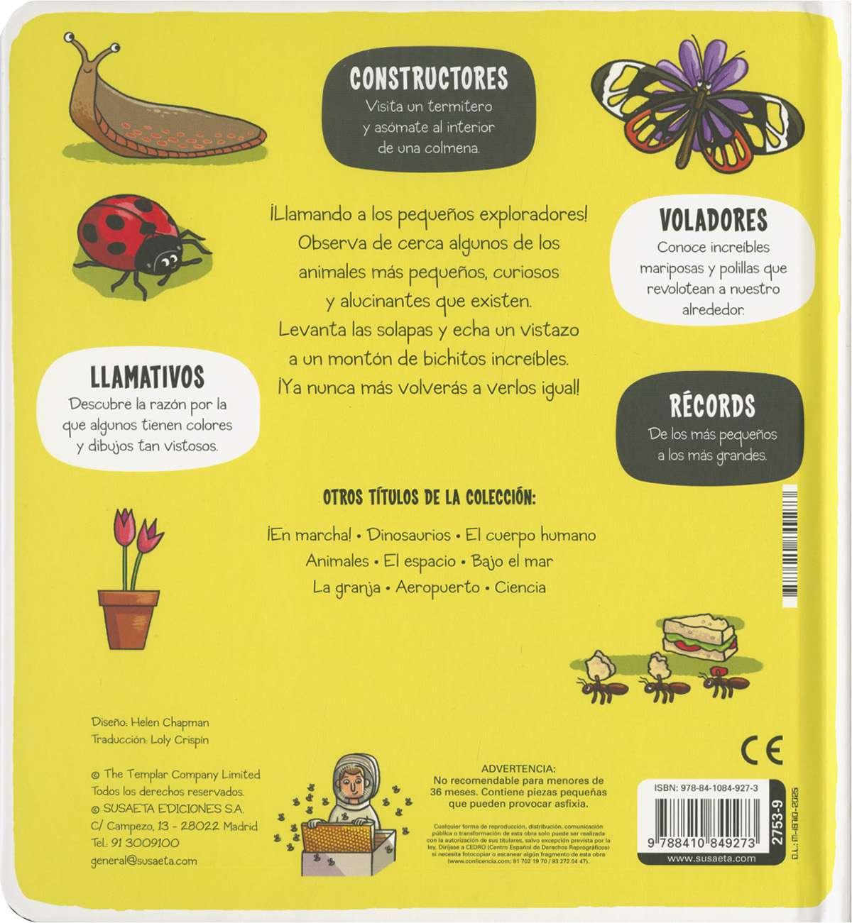 Observa de cerca a algunos de los animales más pequeños, curiosos y alucinantes que existen con este libro de cartón ilustrado y solapas para los niños y niñas amantes de la naturaleza, para los que tienen curiosidad por el mundo y para aquellos a quienes les gusta saber.
