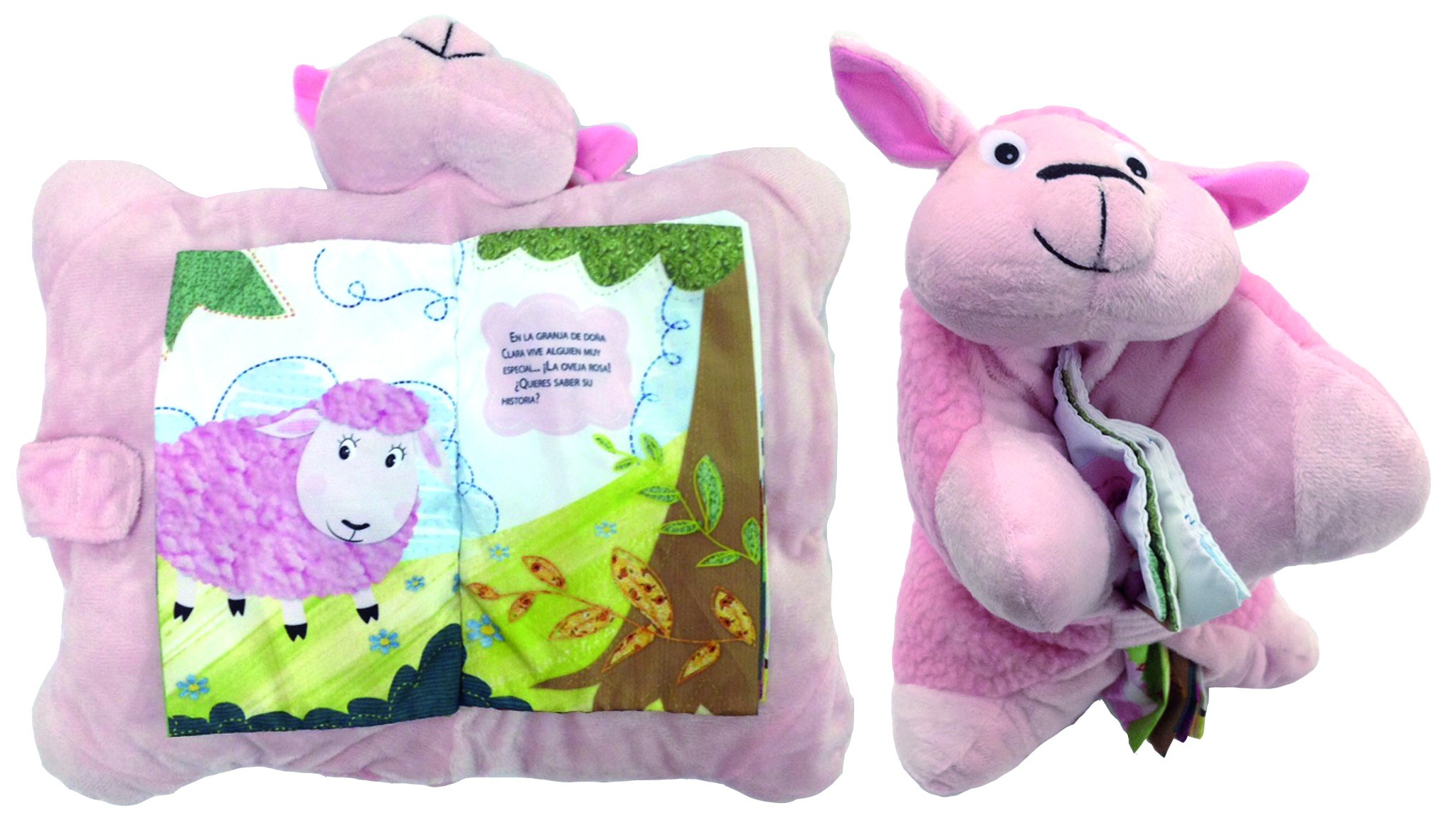 Encuadernación: Tela acolchda con cierre de velcro, cuento que se transforma en una ovejita de peluche