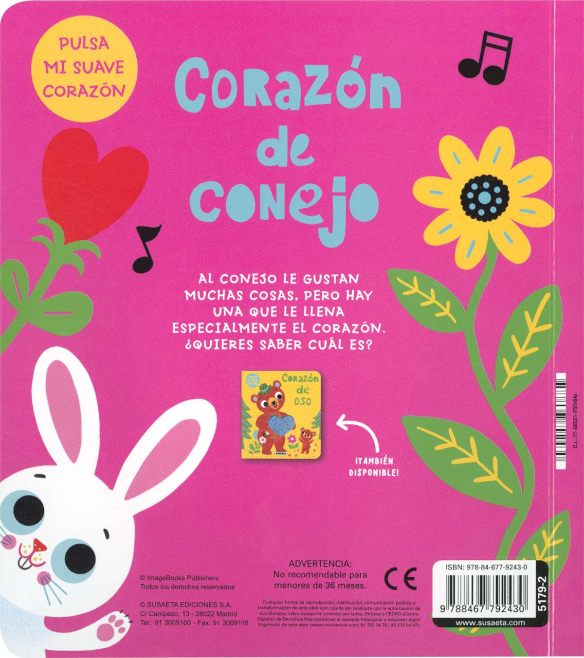 Al conejo le gustan muchas cosas, pero hay una que le llena especialmente el corazón. ¿Quieres saber cuál es? Pulsa su corazón para escuchar un divertido sonido y acarícialo cuando quieras sentir algo suave: este libro de cartón infantil es suave y tierno, ¡como el corazón de un conejo!