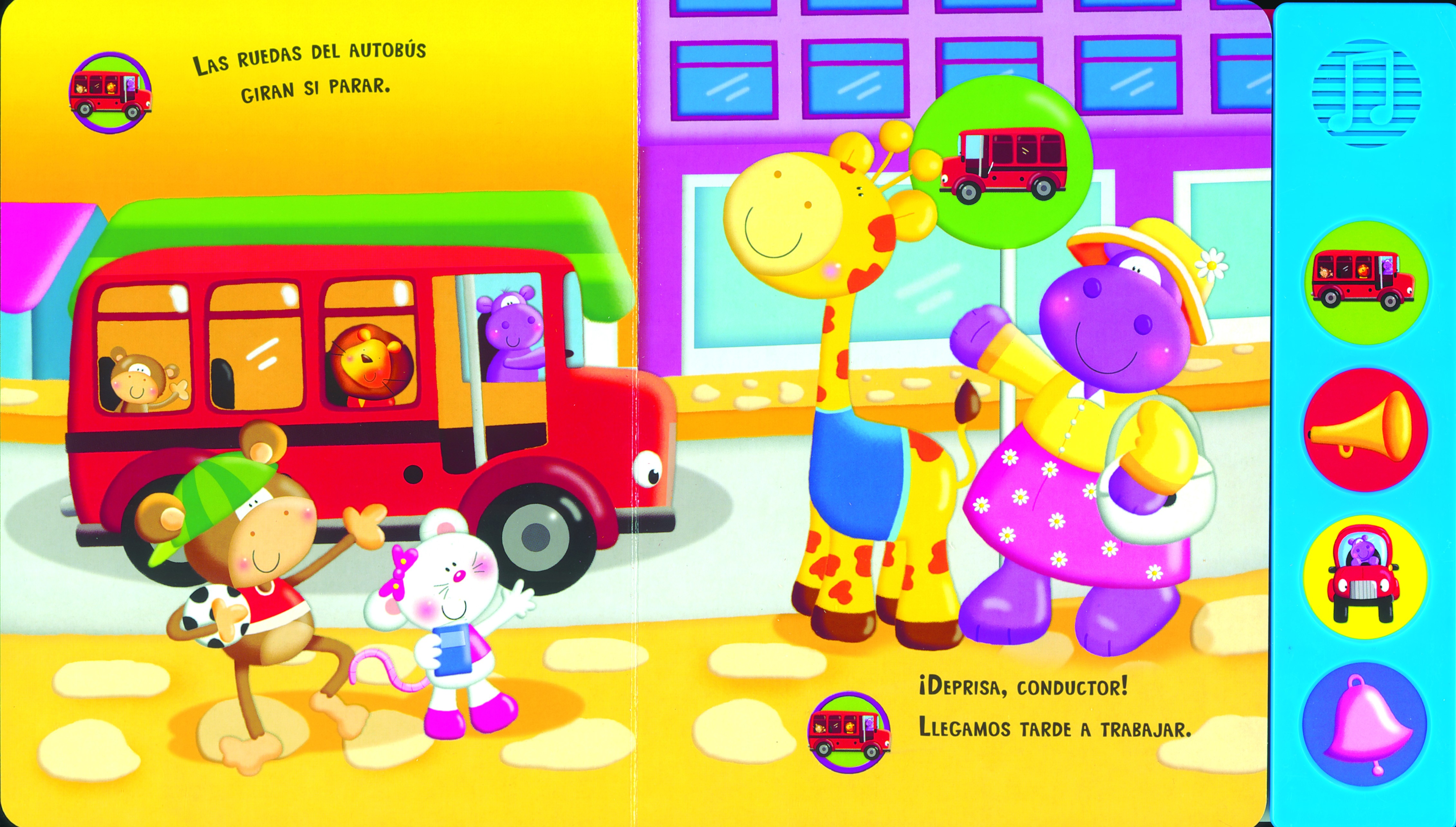 ¡Ir en este autobús es una juerga! ¡Sube con nosotros y date un paseo muy animado! Aprieta los pulsadores para acompañarte con sonidos divertidos.