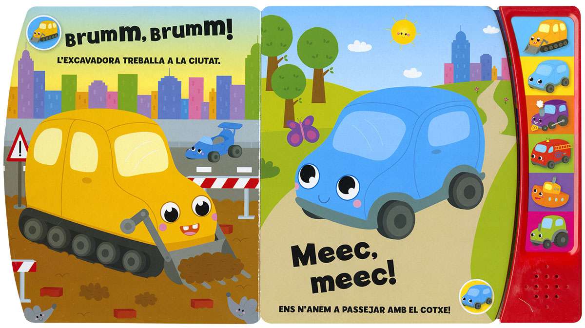 Prem els botons per a escoltar els sons de sis simpàtics vehicles, des del "brumm" de l'excavadora fins al "txucu, txucu" del tractor.