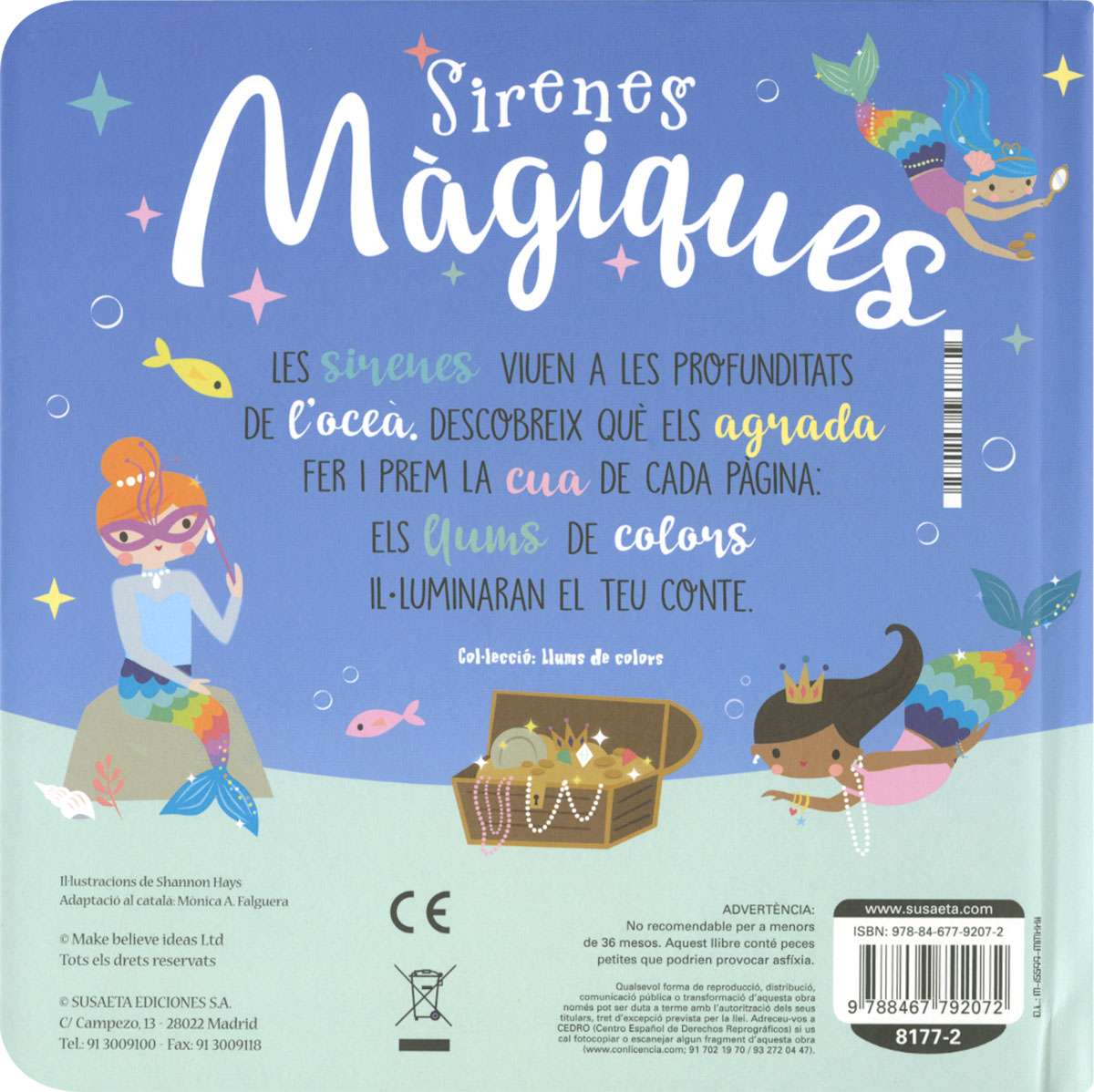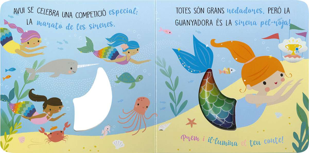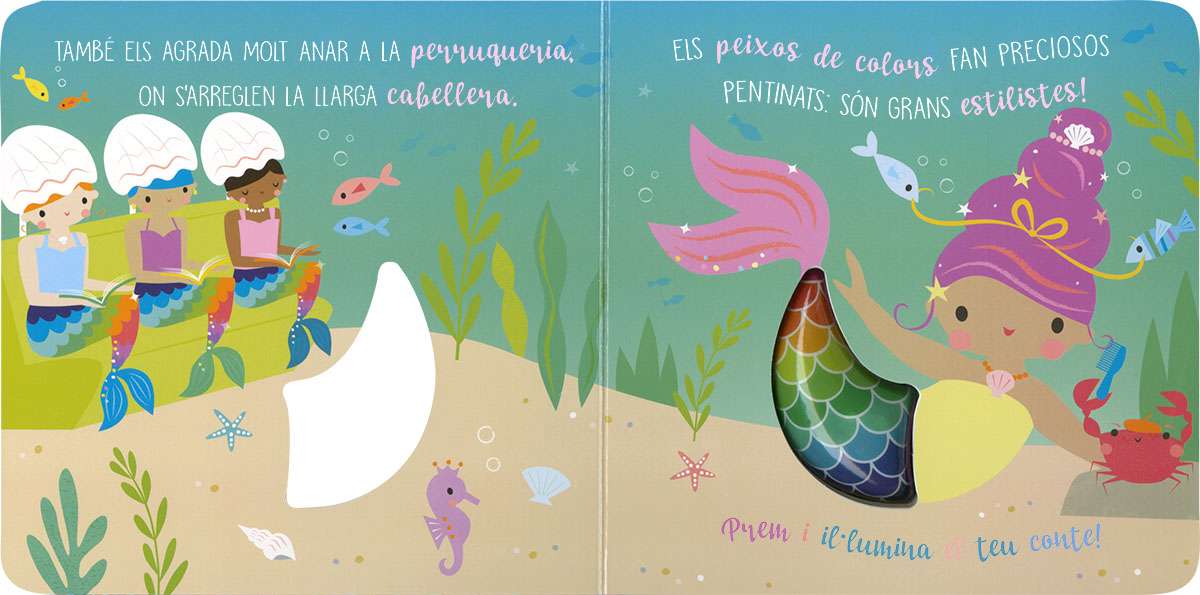 Les sirenes viuen a las profunditats de l'oceà. Descobreix què els agrada fer i prem la cua de cada pàgina: els llums de colors il·luminaran el teu conte.