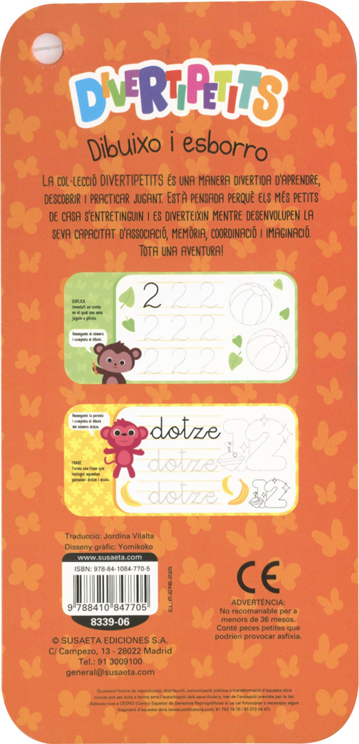 Una manera divertida daprendre, descobrir i practicar jugant. La col·lecció DIVERTIPETITS està pensada perquè els més petits de casa sentretinguin i es diverteixin mentre desenvolupen la seva capacitat dassociació, memòria, coordinació i imaginació. En aquests títols hi trobaràs activitats per observar, identificar i practicar els números, a més de jocs i passatemps relacionats amb els números per compatir i divertir-te. No et preocupis si alguna cosa no et surt a la primera; amb el retolador esborrable ho podràs escriure i esborrar tantes vegades com vulguis.