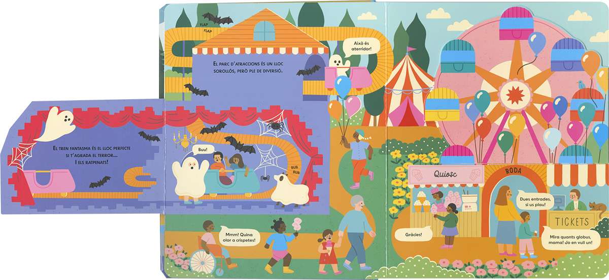 Gaudeix d'unes vacances fantàstiques! Visita la platja, el parc d´atraccions, l´estació d´esquí i molts llocs més mentre descobreixes els sons que s´escolten en desplegar les pàgines.