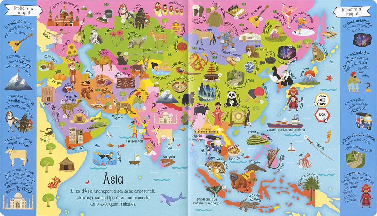 Obre bé les orelles per a llegir aquest llibre! Amb 200 sons de música i instruments, animals, monuments, objectes, pobles i cultures, podràs jugar a endevinar a què o a qui correspon cadascun. Busca i troba els elements en els mapes i escolta amb atenció: què o qui sona? Juga, aprèn i gaudeix viatjant al voltant del món.