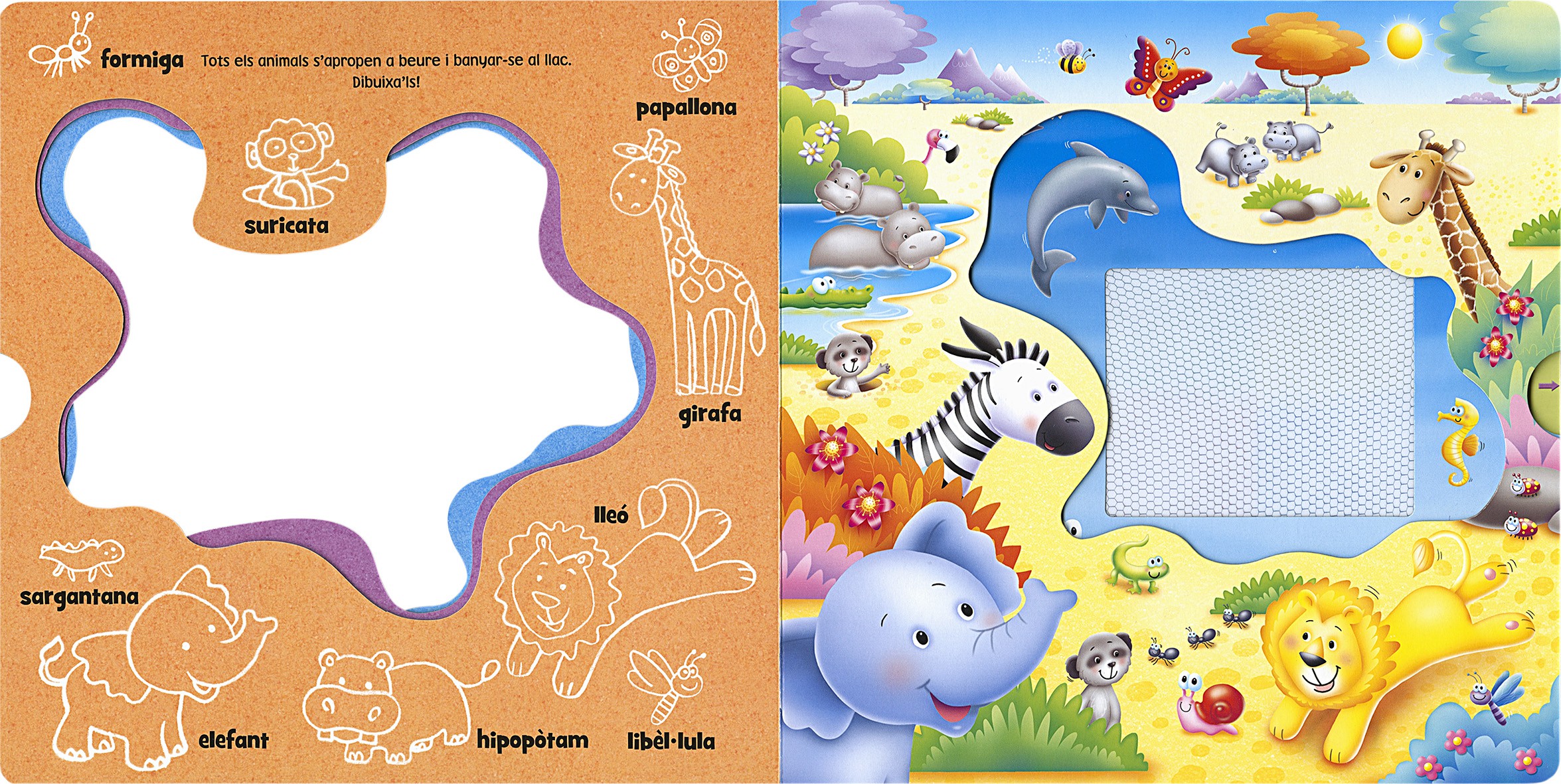 Gaudeix d'hores i hores de diversió! Dibuixa tot tipus d'animals utitlizant el retolador màgic i veuràs apareixer imatges multicolor. Tot seguit, esborra-les i comença una altra vegada. Màgia!