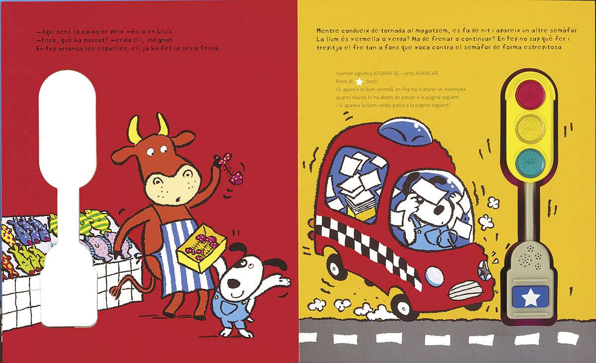 En Pep, el missatger, avui s'ha llevat una mica despistat i ha oblidat com s'han d'interpretar els colors dels semàfors. I, a sobre, té un munt de feina per fer! Vols acompanyar-lo en la seva ruta per indicar-li quan ha d'aturar-se i quan pot continuar el seu camí tranquil·lament?