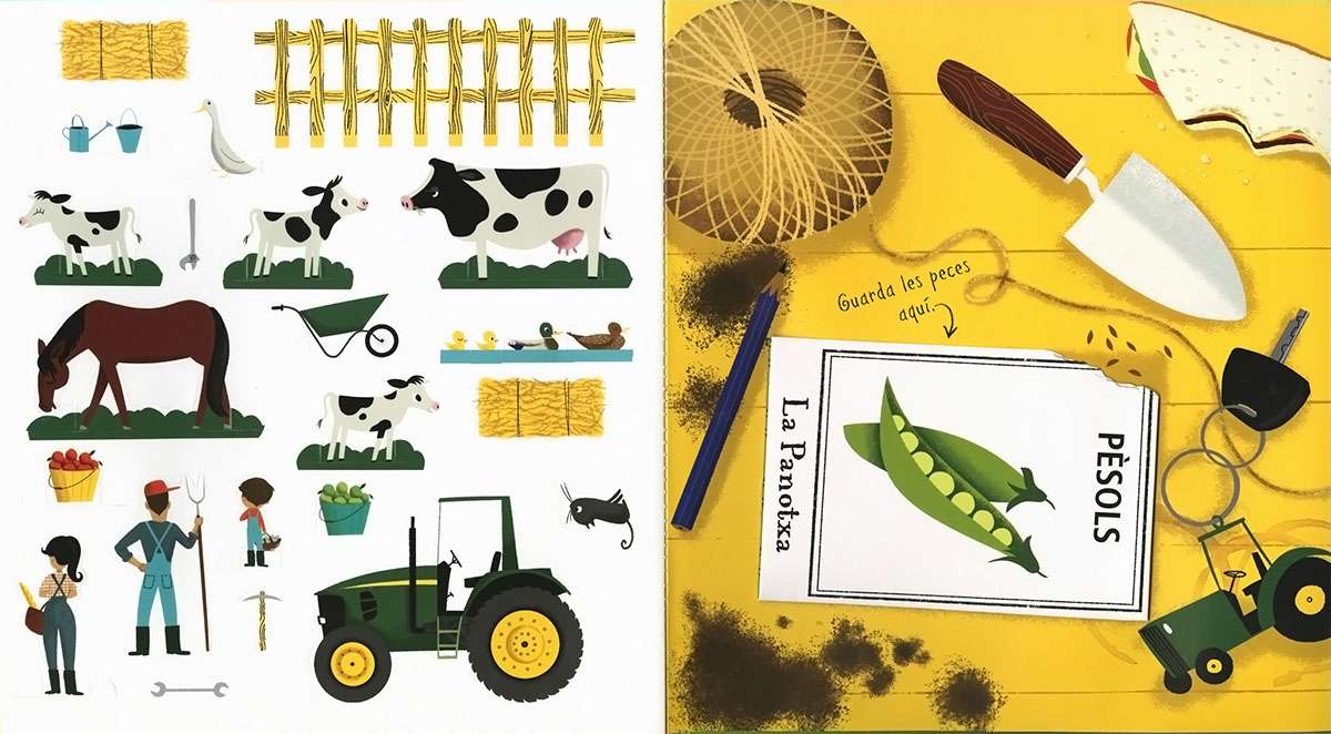 Encuadernación: Cartoné amb coberta plastificada, interior amb maqueta de masia desplegable i figures precortadas