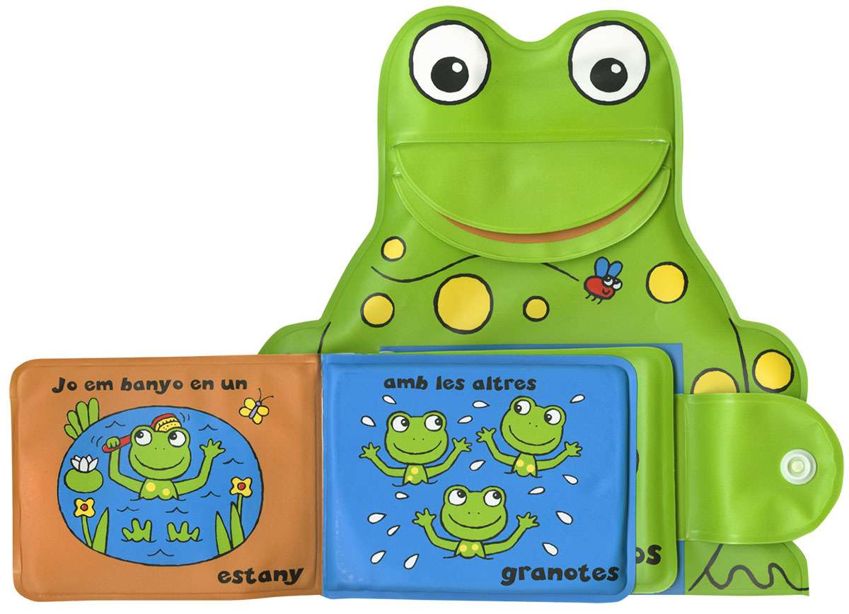 Aquesta granota gaudeix banyant-se amb altres granotes i molts daltres amics. Descobreix qui més es banya als estanys: ànecs, peixos, escarabats i cargols desfilen per aquest entretingut llibre de bany que pots convertir en titella.