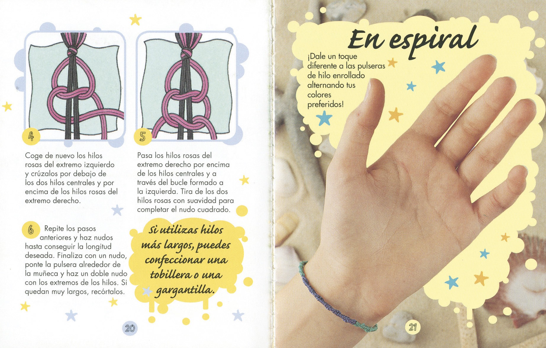 Las pulseras de hilo son muy fáciles y divertidas de hacer; solo tienes que seguir las instrucciones y ponerte manos a la obra. Esta caja contiene un libro ilustrado, hilos de ocho colores diferentes y abalorios para que empieces a practicar desde el principio.