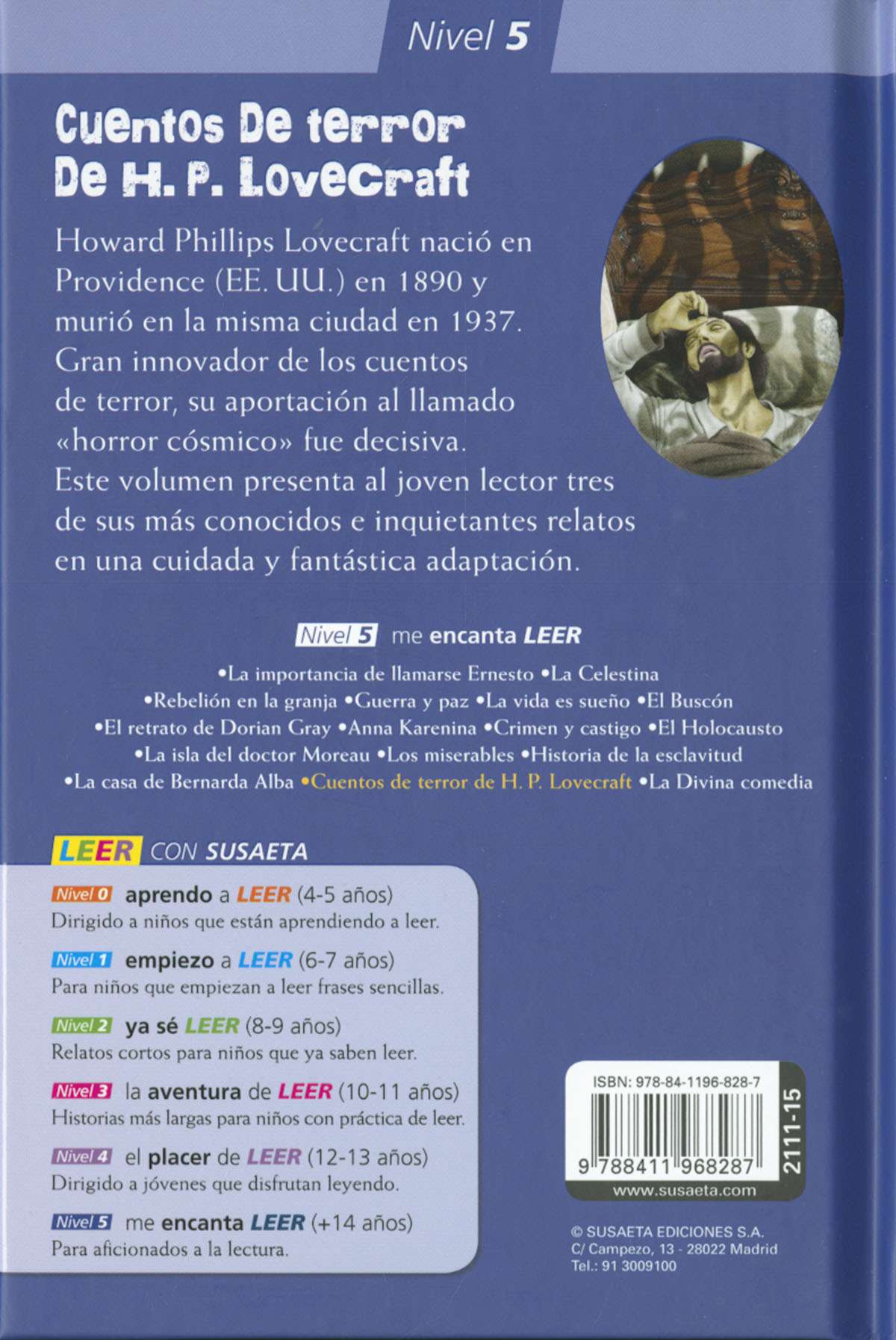 Howard Phillips Lovecraft nació en Providence (EE. UU.) en 1890 y murió en la misma ciudad en 1937. Gran innovador de los cuentos de terror, su aportación al llamado «horror cósmico» fue decisiva. Este volumen presenta al joven lector tres de sus más conocidos e inquietantes relatos en una cuidada y fantástica adaptación.