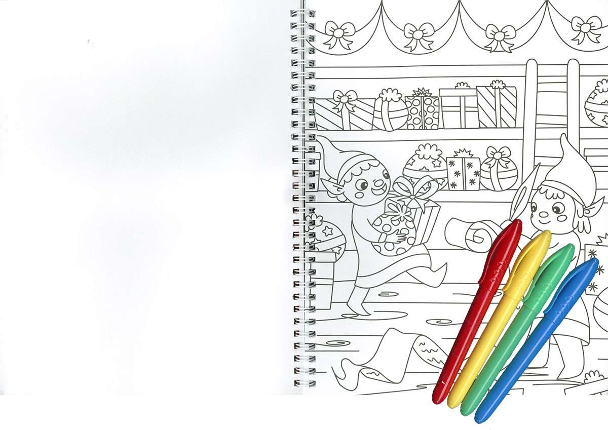 Descubre la magia de la Navidad con este libro para colorear y los 4 rotuladores que incluye. ¡Papá Noel, renos, elfos y un montón de amigos más te están esperando!