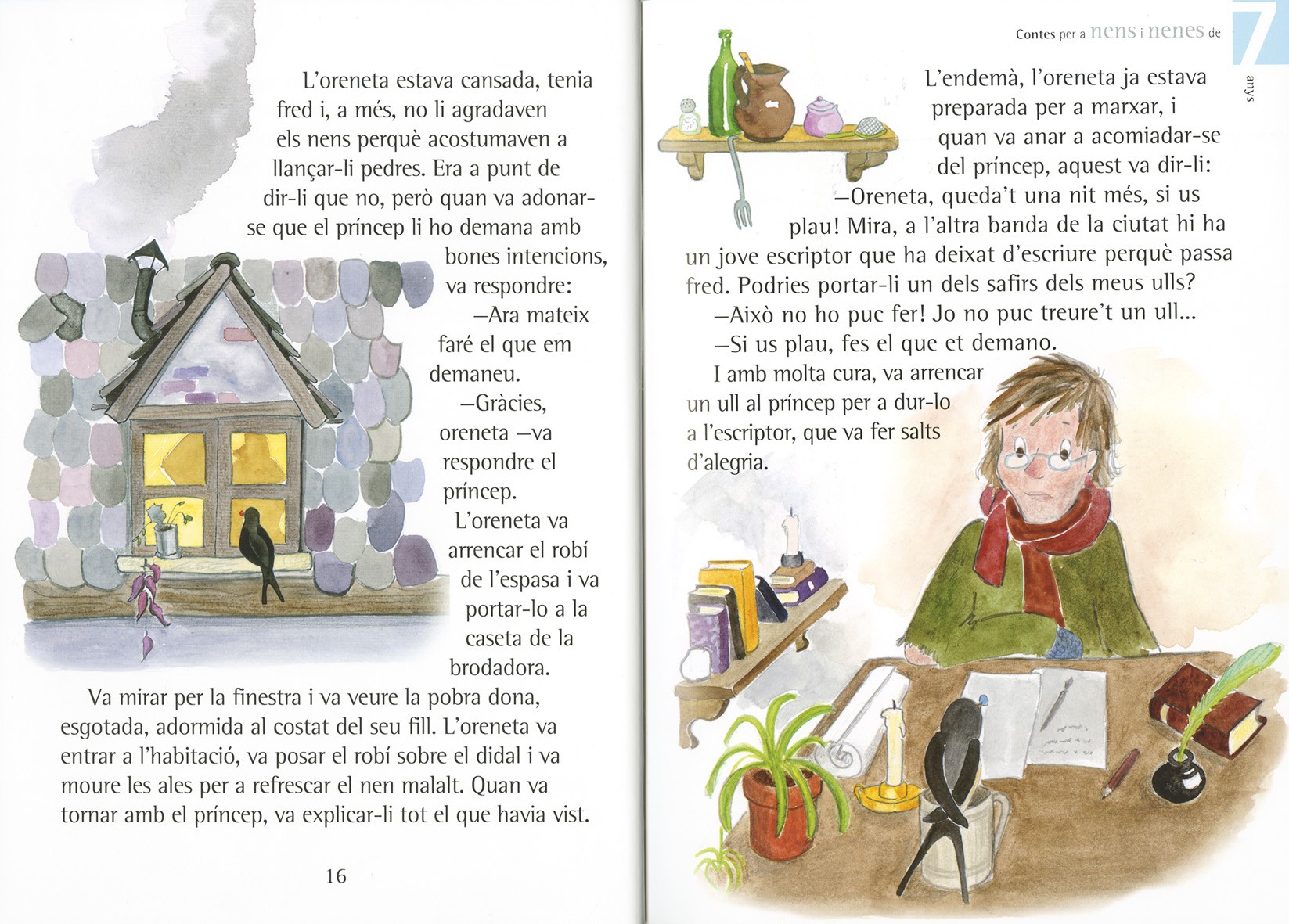 Contes per a nens de 7 anys és un llibre pensat especialment per a ells. Són contes de color blau que els encantaran, amb personatges humans i animals i moltes aventures, sempre amb un fons de tendresa i ensenyament. El príncep feliç, El lleó i els animals de la selva, La tauleta, l'ase i l'estaca encantada i L'ànec i la serp són històries per a entretenir els nens, que gaudiran tant per la lectura com per les boniques il·lustracions.