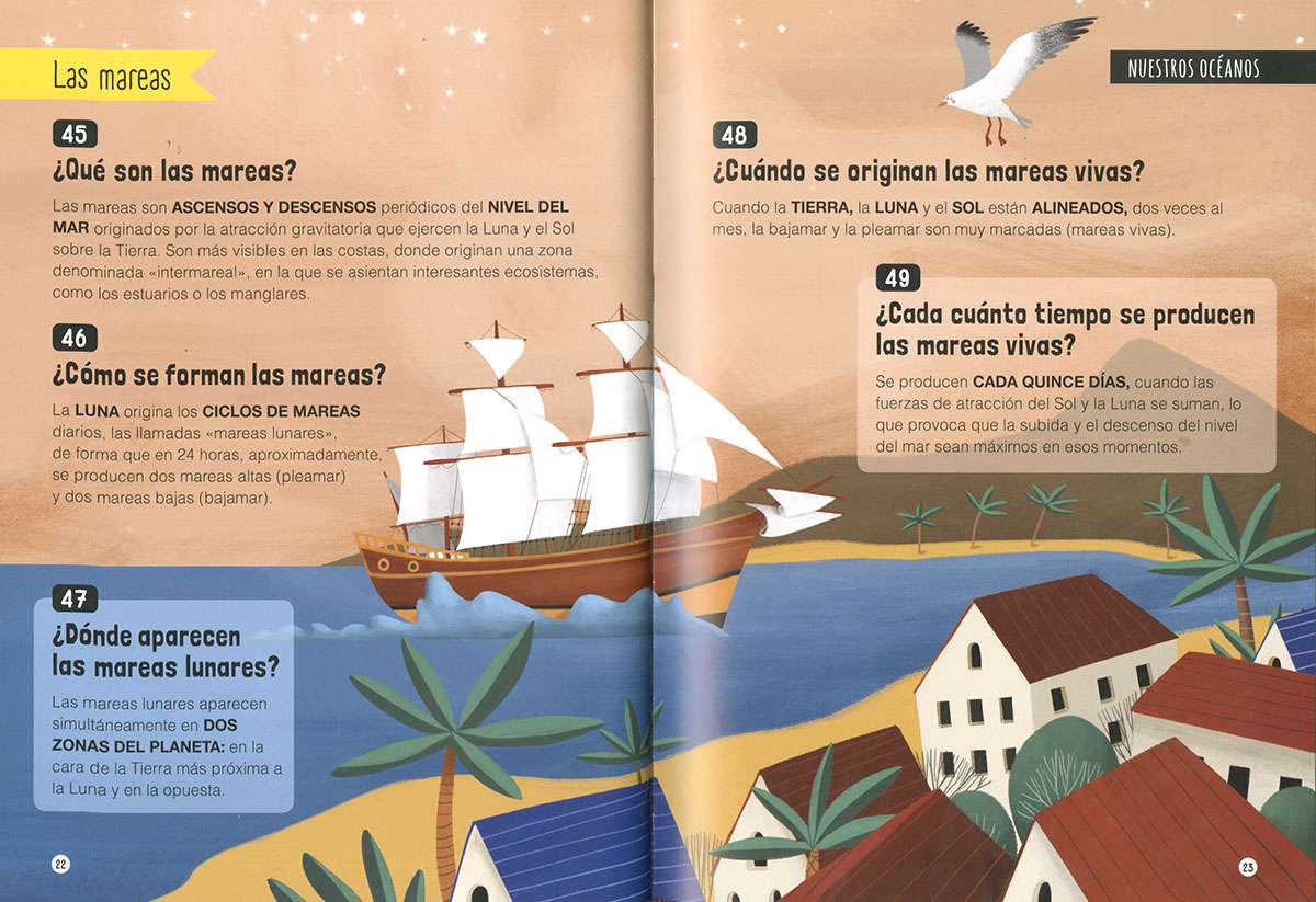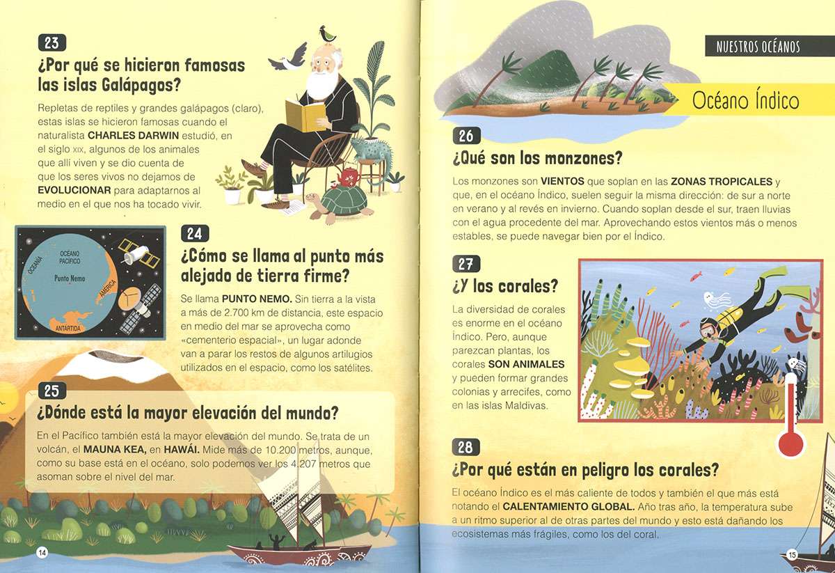 Bajo la superficie del océano, donde las olas bailan con el viento y el sol dibuja destellos de luz, existe un mundo de maravillas que espera ser explorado. Este no es un lugar común, es el hogar de las criaturas más asombrosas que jamás hayas imaginado. Con este libro te sumergirás en las profundidades azules para conocer, a lo largo de 250 preguntas y respuestas, a los animales que viven en el corazón del mar. Desde la ballena azul, el animal más grande del mundo, hasta el misterioso calamar que cambia de color en un abrir y cerrar de ojos.