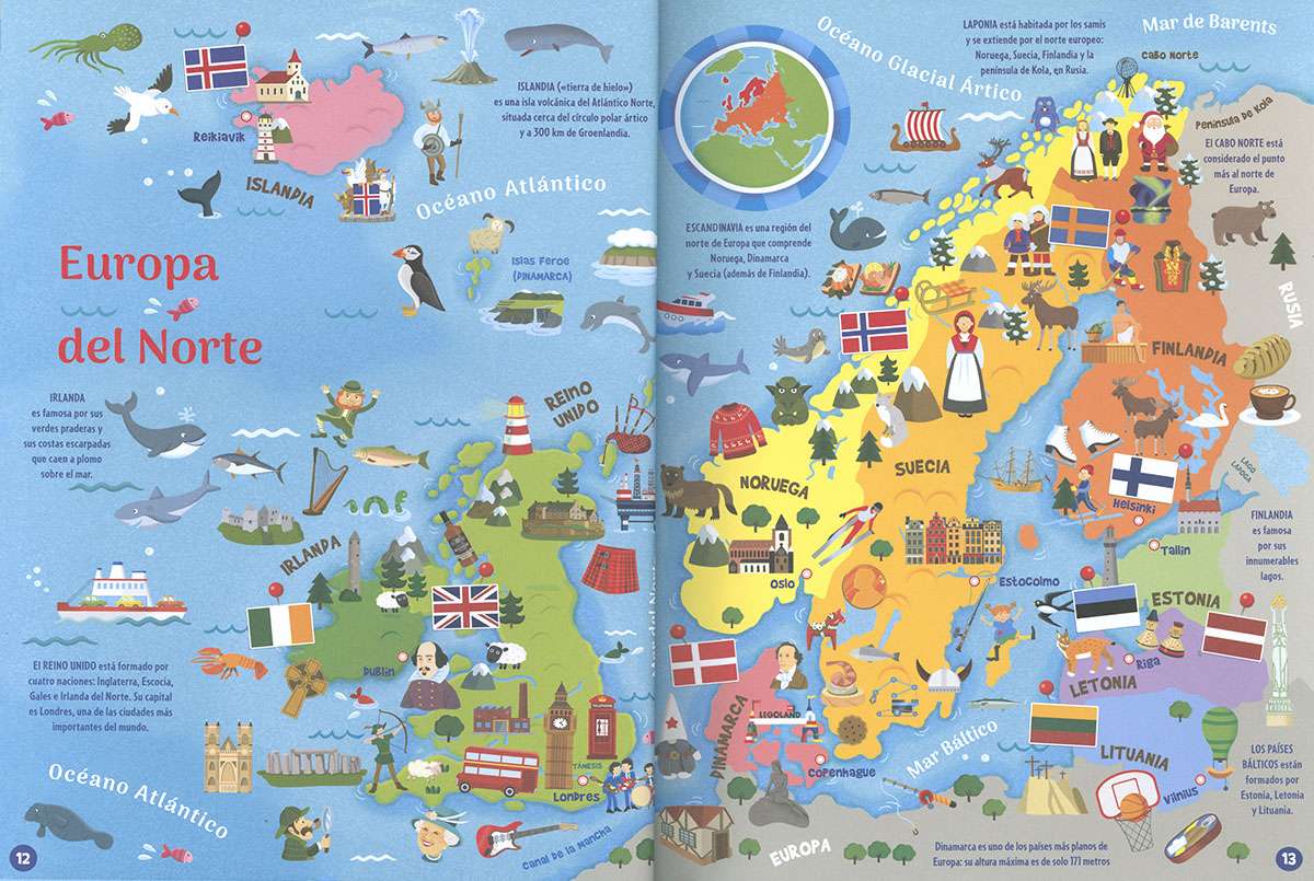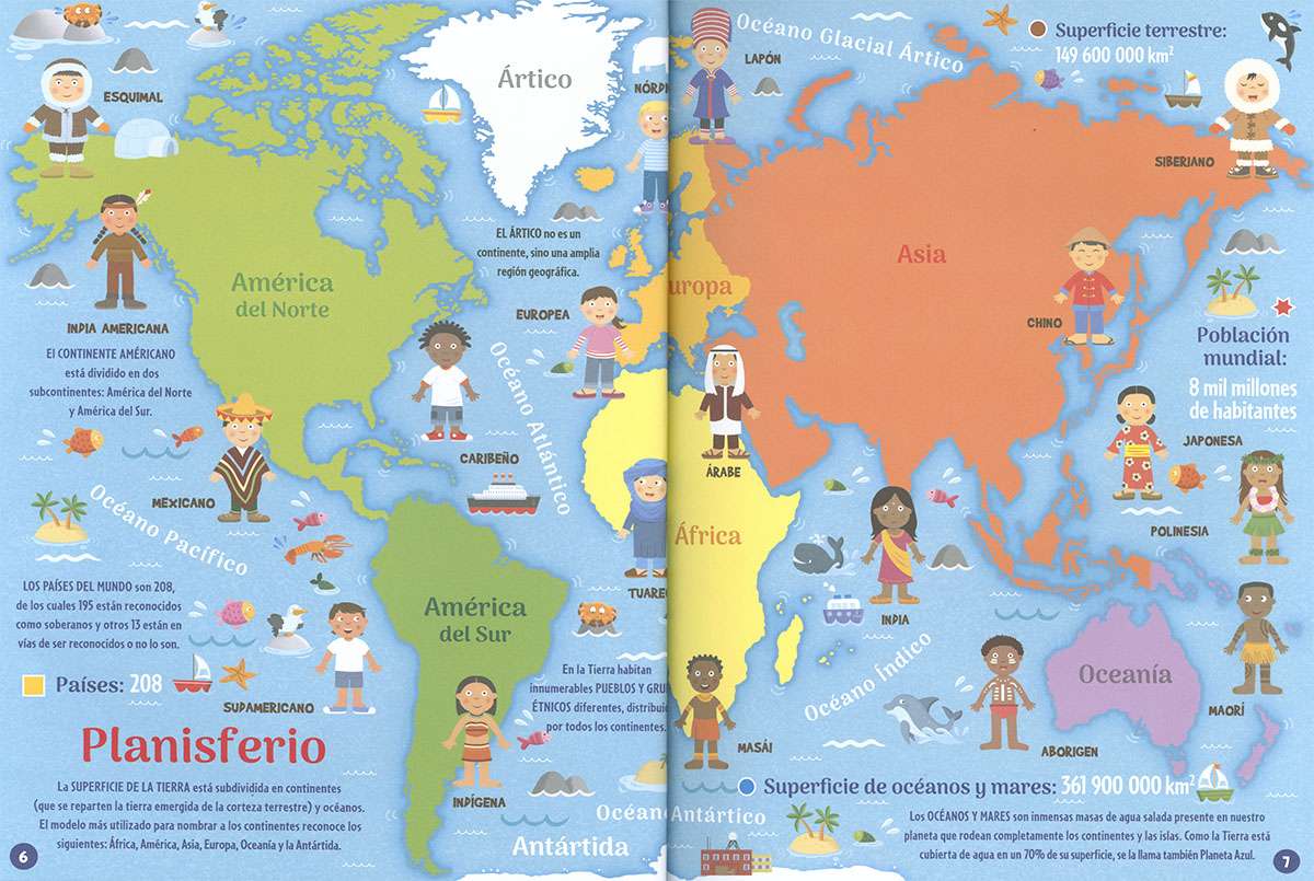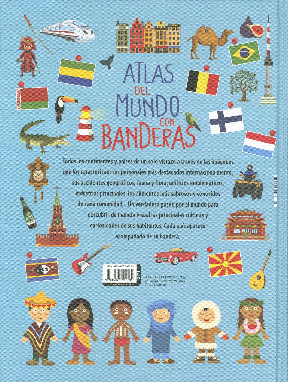 Todos los continentes y países de un solo vistazo a través de las imágenes que los caracterizan: sus personajes más destacados internacionalmente, sus accidentes geográficos, fauna y flora, edificios emblemáticos, industrias principales, los alimentos más sabrosos y conocidos de cada comunidad... Un verdadero paseo por el mundo para descubrir de manera visual las principales culturas y curiosidades de sus habitantes. Cada país aparece acompañado de su bandera.